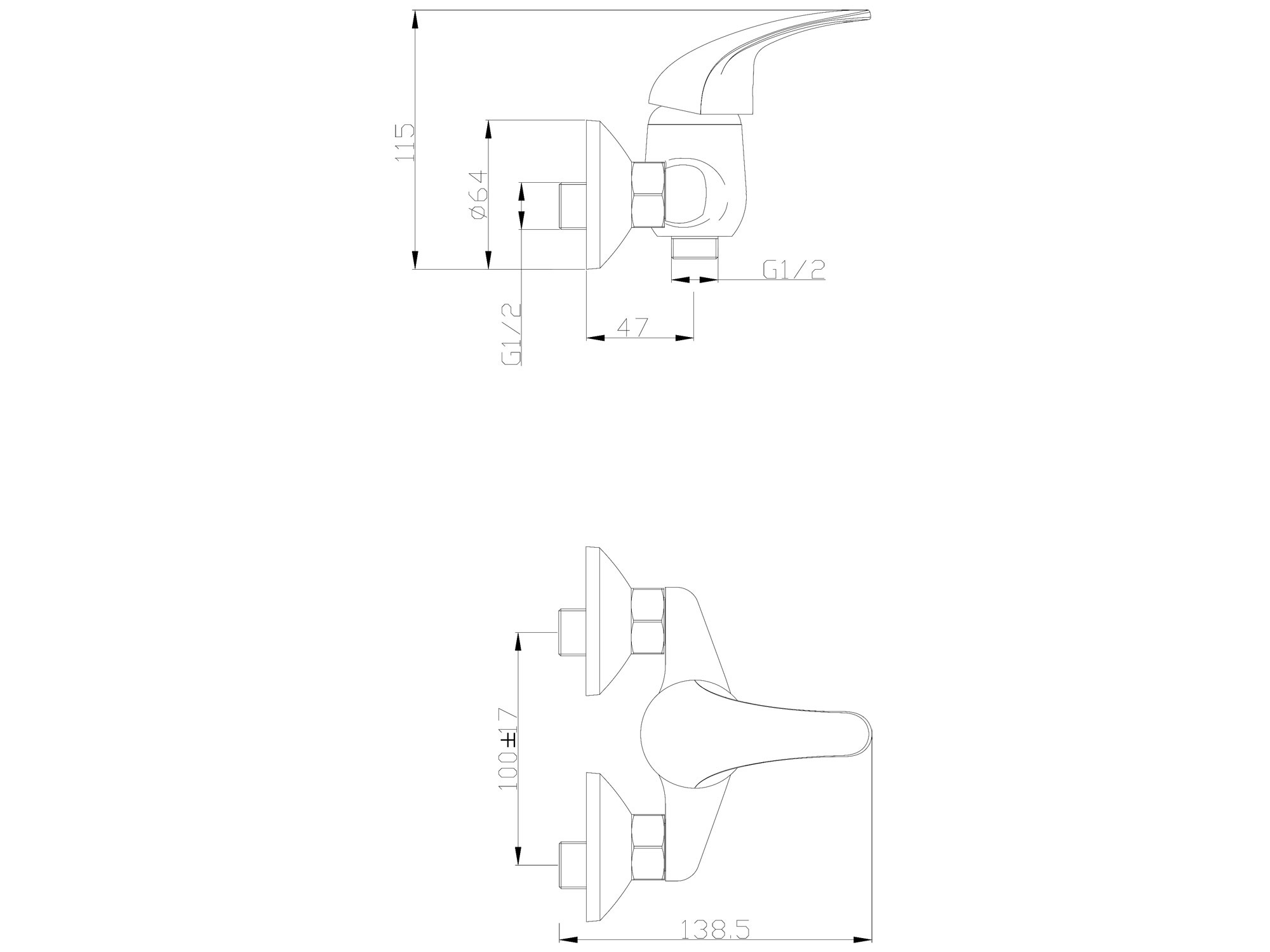 baterie sprchová, 100mm