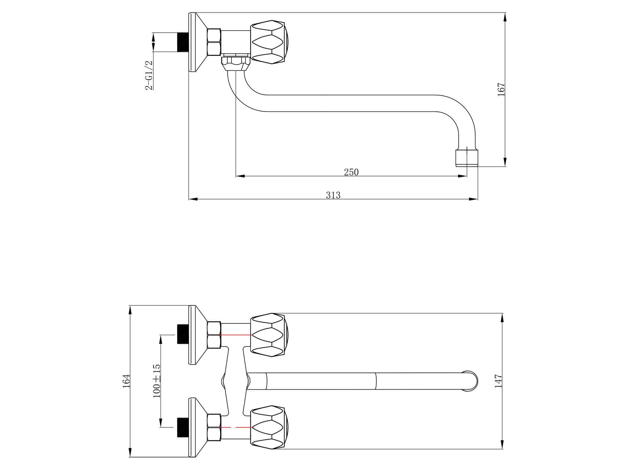baterie umyvadlová/dřezová, 100mm