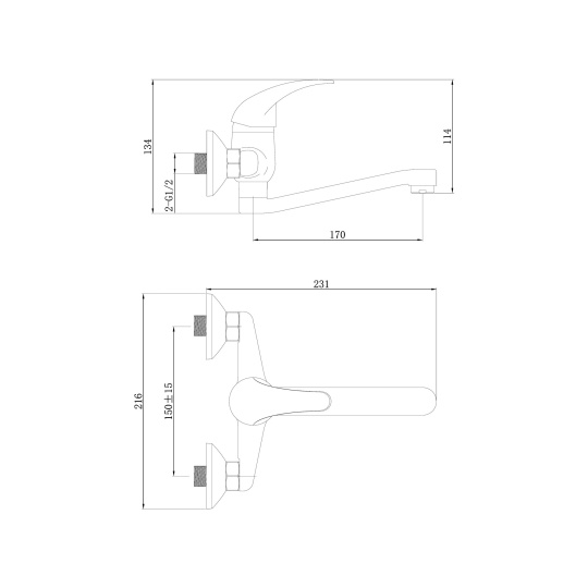 baterie umyvadlová/dřezová, 150mm