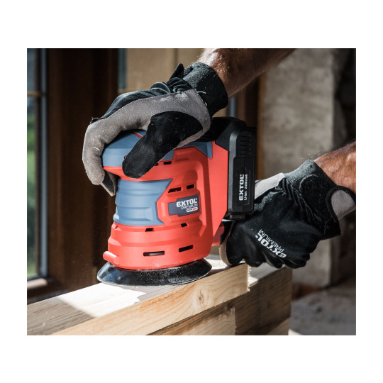 Aku vibrační bruska je ideální nástroj pro broušení dřeva a dřevěných materiálů, kovů a k zabroušení poškozených míst povrchové úpravy, např. barvy a laku, dále tmelů apod. bez použití vody. Rotační pohyb vytváří vysoký brousící výkon a excentricita vytváří náhodný pohyb, který zabraňuje vzniku nežádoucích hlubokých rýh v broušeném materiálu. Brusná plocha je vybavena suchým zipsem, který umožňuje snadnou výměnu brusných papírů. Integrované odsávání pilin udržuje čistý pracovní prostor při práci a po práci jednoduše vysypete sběrný vak a je uklizeno. Pro běžnou práci dostačují jeden nebo dva 2000mAh akumulátory, které můžete rychle nabít v rychlonabíječce, pro náročnější nebo delší práci doporučujeme větší akumulátory s kapacitou 4000–8000mAh. Akumulátor lze použít ve všech typech nářadí řady EXTOL SHARE20V. Díky použité Li-ion technologii je ho možné kdykoliv dobíjet, aniž by se tím snižovala jeho kapacita. Li-ion akumulátor ztrácí energii vlivem samovybíjení velmi pomalu a vydrží dlouho nabitý a připravený k použití.