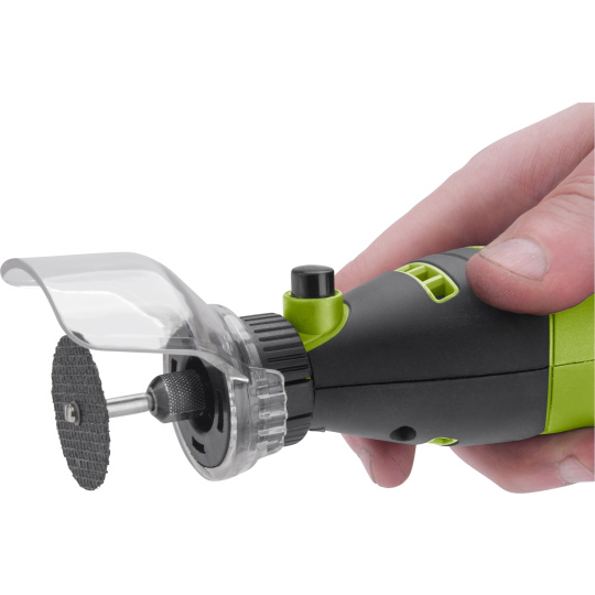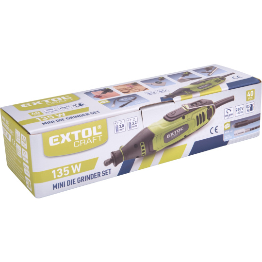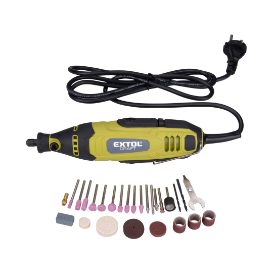 Malá bruska s řadou nástavců, určená k jemným gravírovacím pracím, preciznímu opracování dřeva, kovu či plastů a práci ve stísněných prostorech. Má ergonomický tvar a je pokrytá gumou v místech úchopu, což snižuje únavu při práci. Stroj umožňuje výměnu a montáž upínacích kleštin pro uchycení nástrojů s průměrem stopky 3 nebo 3,2 mm. Součástí balení je sada 40 kusů brusných a řezacích nástrojů a nástavců. Pro velmi jemnou a drobnou práci lze k brusce dokoupit ohebný nástavec.