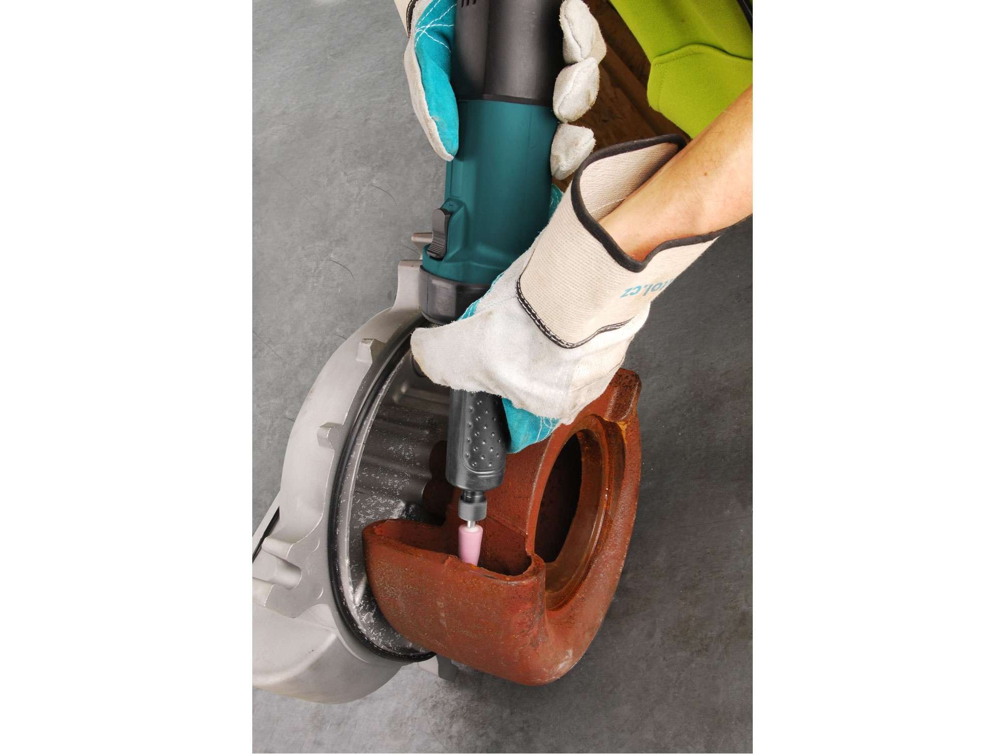 Přímá bruska je určena k opracovávání větších částí kovu korundovými brusnými nástroji nebo karbidovými frézami se stopkou o průměru 6mm. Jedná se např. o obrušování, vybrušování, odhrotování a frézování kovu. Brusku lze použít např. k zabrušování/frézování svárů, k zabrušování ostrých hran, vybrušování prorezlých nebo poškozených částí kovu, k broušení na špatně přístupných místech, kde není možný přístup s úhlovou bruskou apod.
