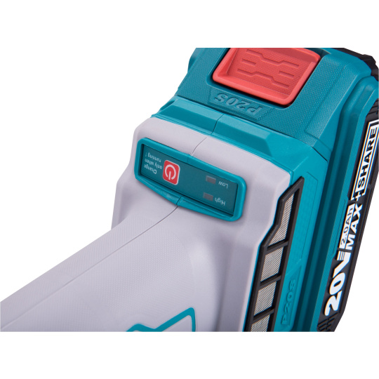 Tato akumulátorová úhlová bruska z kategorie industrial je určena k broušení, smirkování a řezání kovových materiálů a kamene bez použití vody s použitím k tomu určeného nástroje pro úhlové brusky. Bruska je vybavena brushless motorem. Tento nový typ motoru má vyšší životnost, je výkonnější a má menší spotřebu el. energie než klasické motory s uhlíkovými kartáči. Její tělo je ergonomicky tvarováno, aby se snadno držela při práci a pogumovaná rukojeť tlumí vibrace. Hlavní výhodou této brusky je akumulátorový pohon, který dovoluje si tuto brusku vzít s sebou tam kde s ní potřebujete pracovat, bez ohledu na to, jestli tam je rozvod elektrické energie. Bruska je potažena protiskluzovou vrstvou z gumovo-pryžového materiálu, který tlumí vibrace. Rovněž je k dispozici polohovací úchyt na ruku. Bruska je dodávána bez baterie a nabíječky. Akumulátor lze použít ve všech typech nářadí řady Total P20S. Díky použité Li-ion technologii je ho možné kdykoliv dobíjet, aniž by se tím snižovala jeho kapacita. Li-ion akumulátor ztrácí energii vlivem samovybíjení velmi pomalu a vydrží dlouho nabitý a připravený k použití.