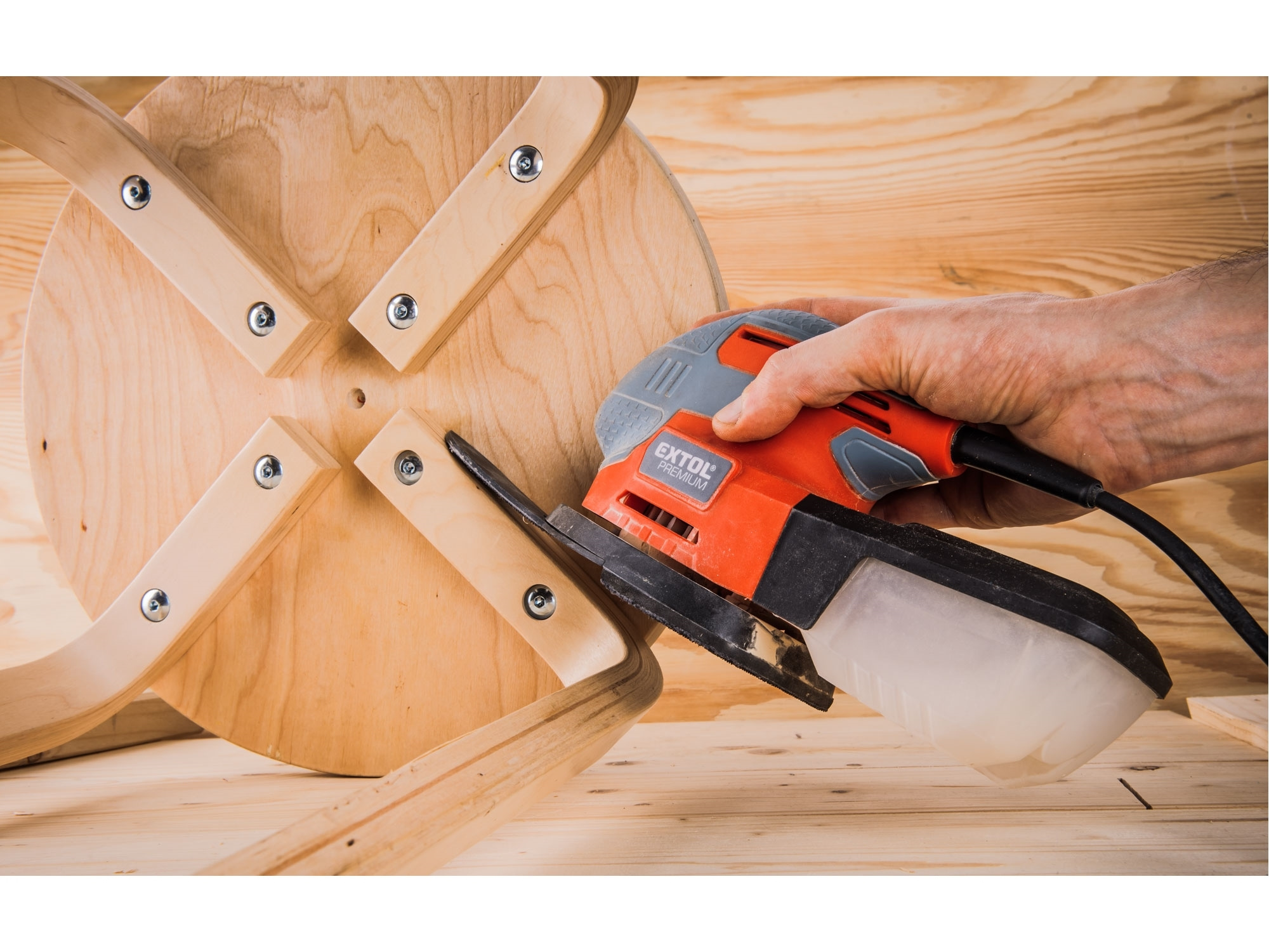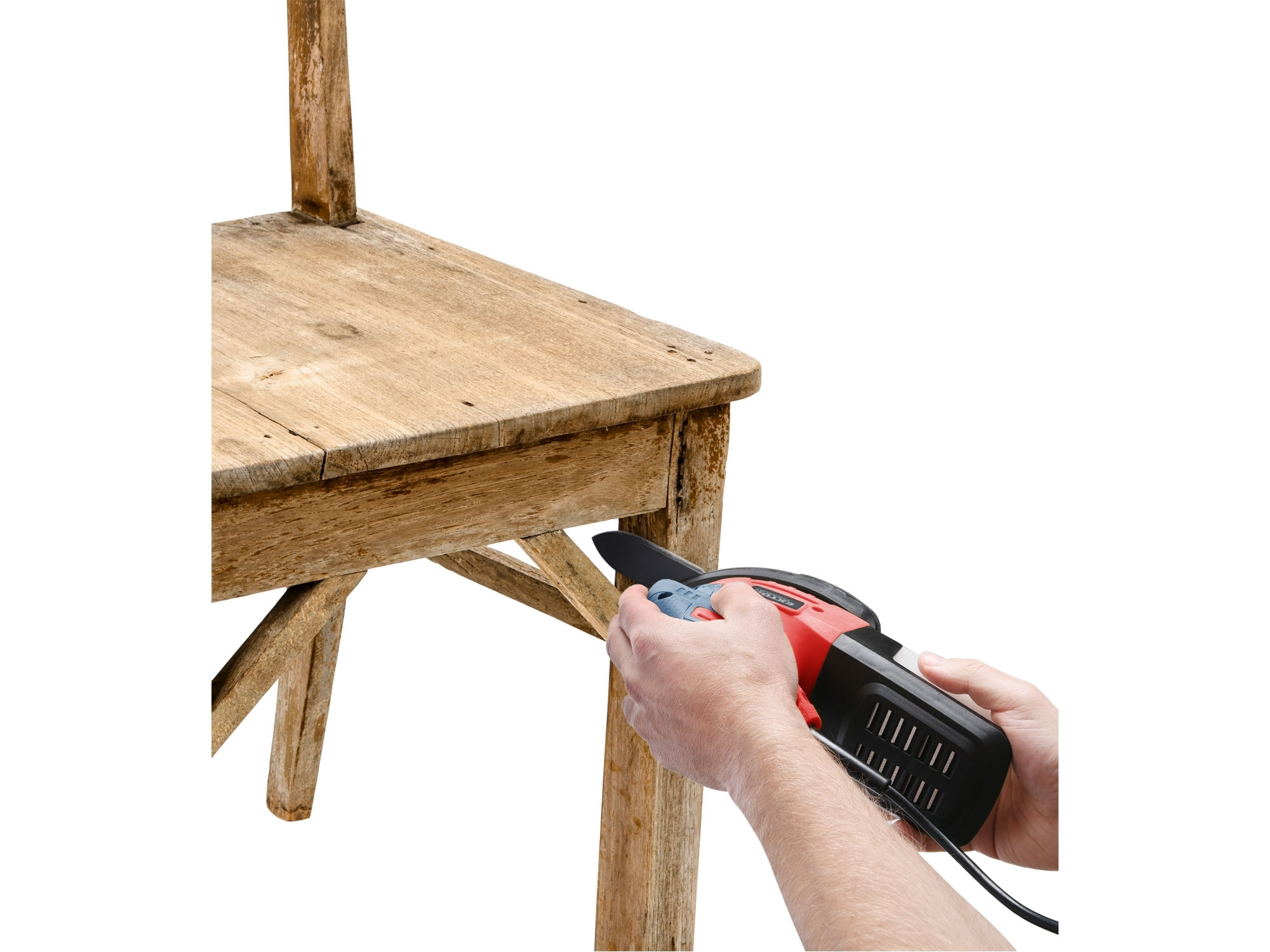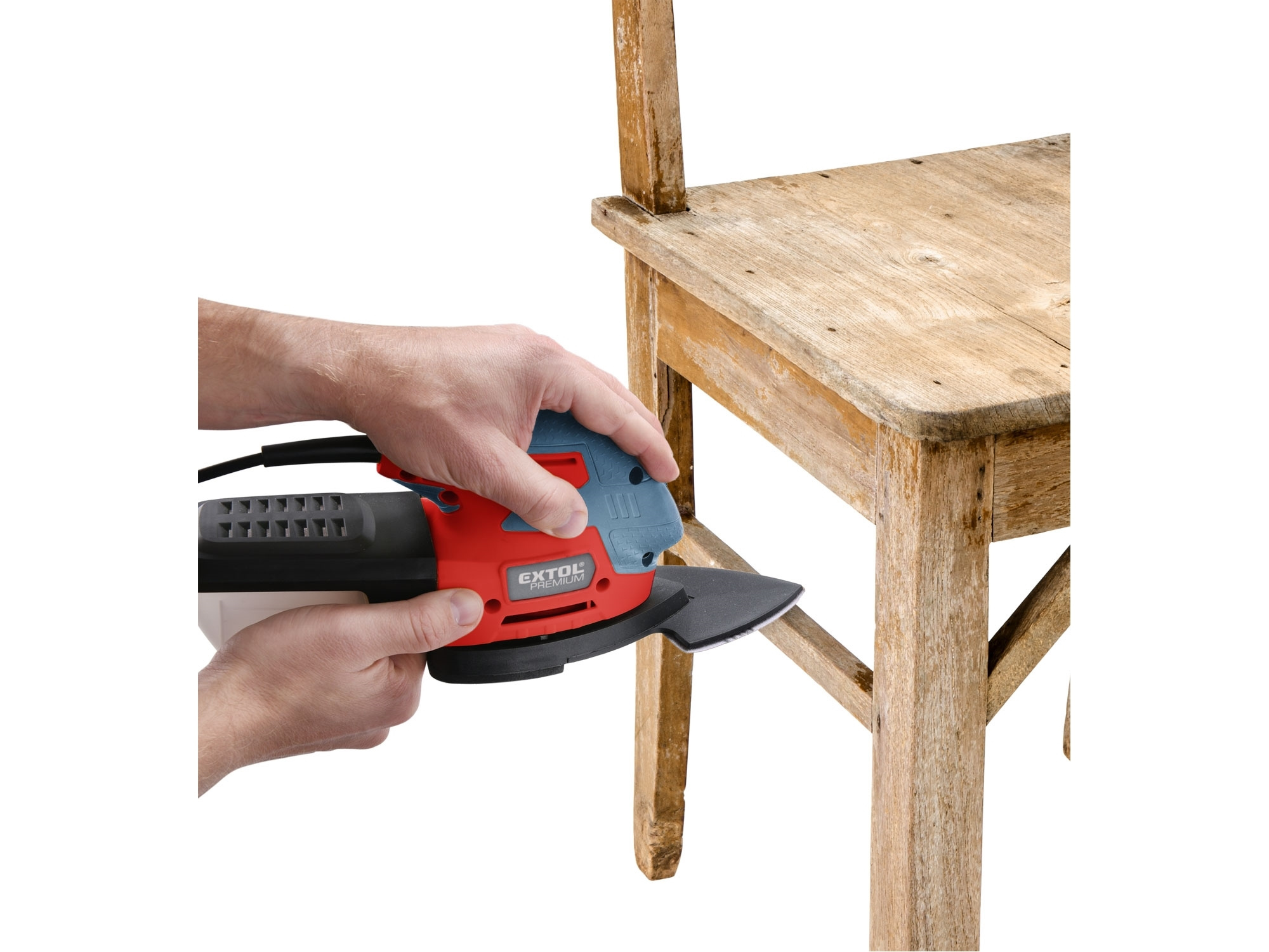 Vibrační bruska s uchycením brusného papíru na suchý zip je určena pro broušení dřeva a dřevěných materiálů, kovů a k zabroušení poškozených míst povrchové úpravy, např. barvy a laku, dále tmelů apod. bez použití vody.Na základnu brusky lze nainstalovat tři typy nástavců dle požadavku na dostupnost broušeného místa:1) Celá brusná plocha: je určena k broušení ploch. Na brusnou základnu lze dát brusný papír s jednou drsností nebo dvoudílný brusný papír s větší velikostí brusného zrna v přední části pro obroušení a s menší velikostí zrna v zadní části pro zabroušení. 2) Nástavec trojúhelník: pro broušení drážek a úzkých míst s většími plochami, např. boky prken v plotu...3) Nástavec brusný prst: pro broušení úzkých ploch, kde není možné broušení větším nástavcem a v místech, kde se není možné dostat kvůli velikosti brusky.Bruska není vhodná pro broušení sádrokartonu.