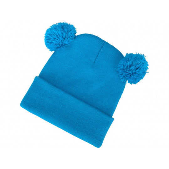 čepice s čelovkou 4x25lm, USB nabíjení, modrá s bambulemi, dětská