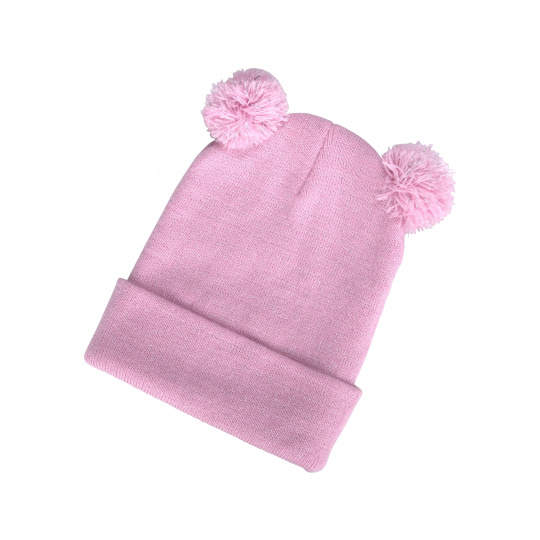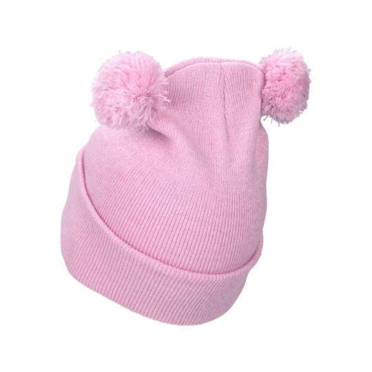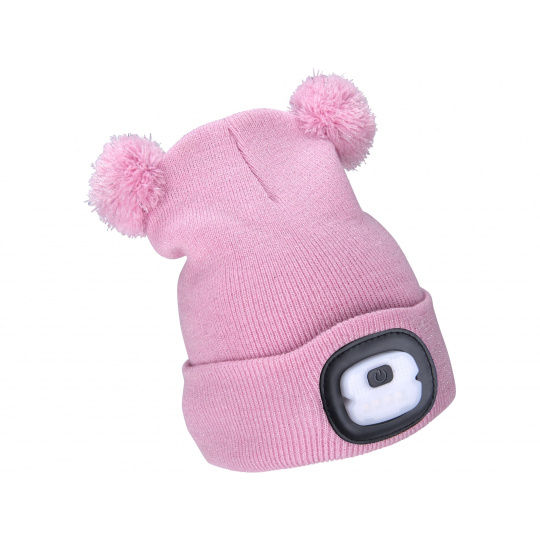 čepice s čelovkou 4x25lm, USB nabíjení, růžová se třpytkou a bambulemi, dětská, 70% acryl a 30% polyester