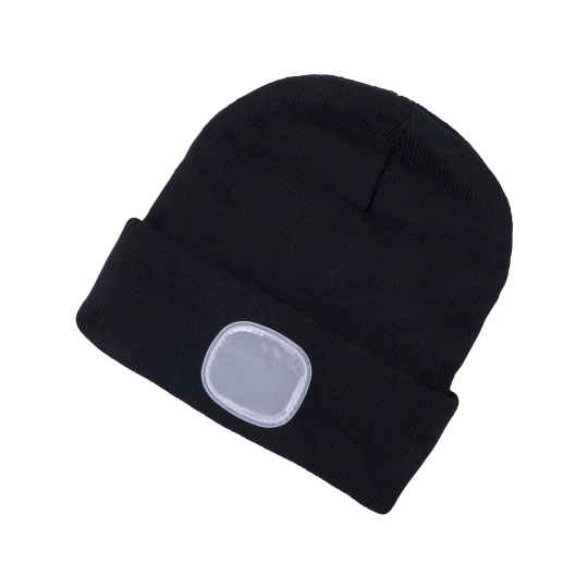 čepice s čelovkou 4x45lm, USB nabíjení, černá, univerzální velikost, 73% acryl a 27% polyester