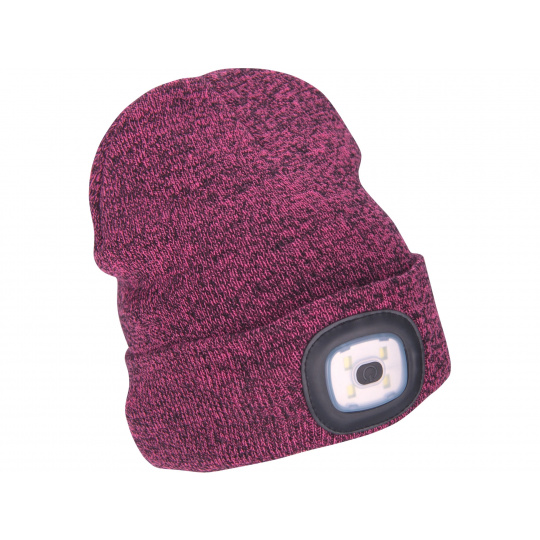 čepice s čelovkou 4x45lm, USB nabíjení, fialová/černá, univerzální velikost, 100% acryl
