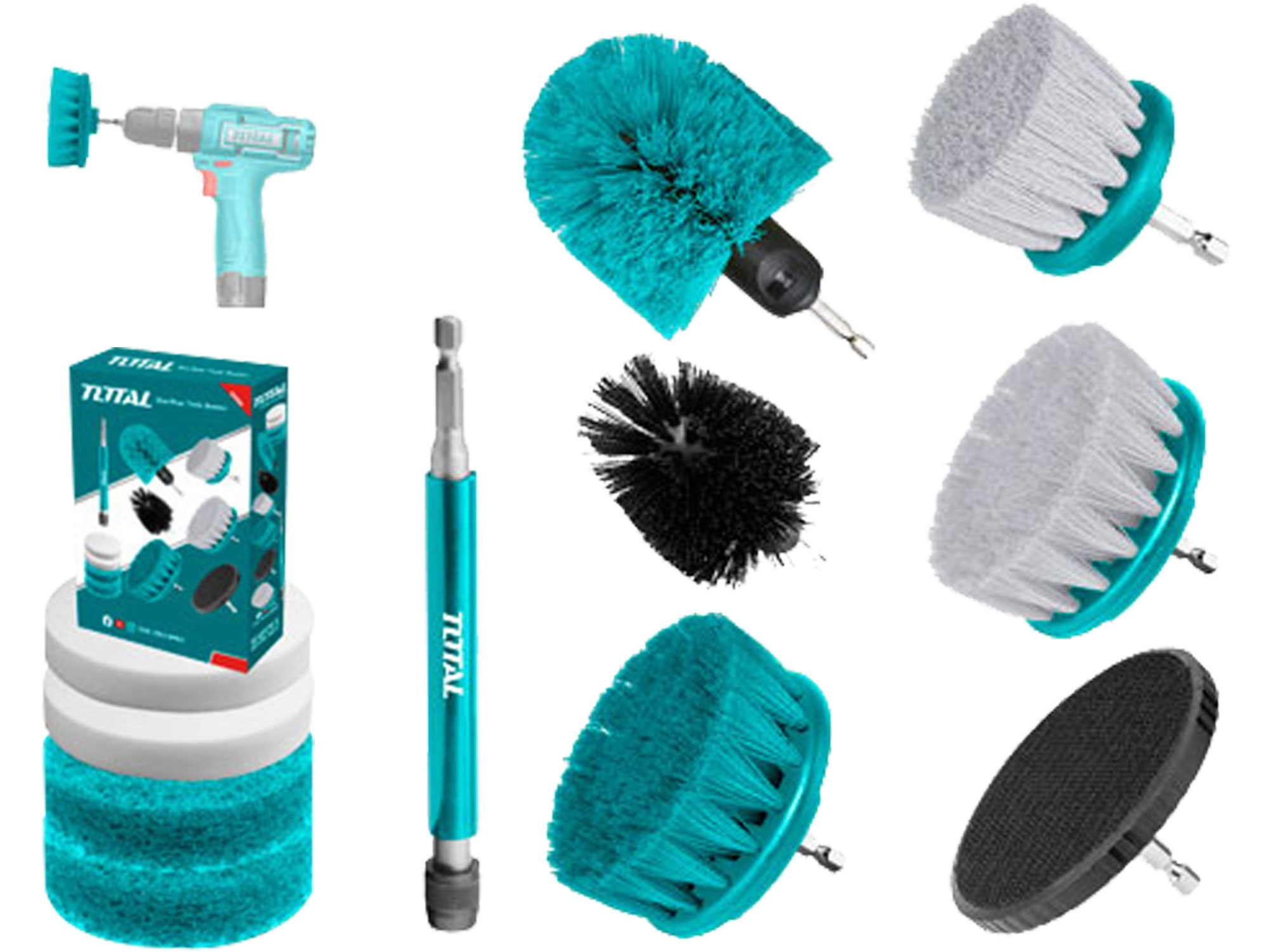 Sada čistících kartáčů. Kartáče jsou určeny pro AKU vrtačky, utahováky, rázové utahováky. Sada obsahuje:1 ks 2" kartáč s měkkými štětinami1 ks 3,5" kartáč s měkkými štětinami1 ks 3,5" kartáč se středními štětinami1 ks 360° kartáč se středními štětinami1 ks 360° kartáč s brusnými štětinami1 ks 6" prodlužovací držák2 ks 3,5" drátěnky2 ks 3,5" houby1 ks opěrná podložka