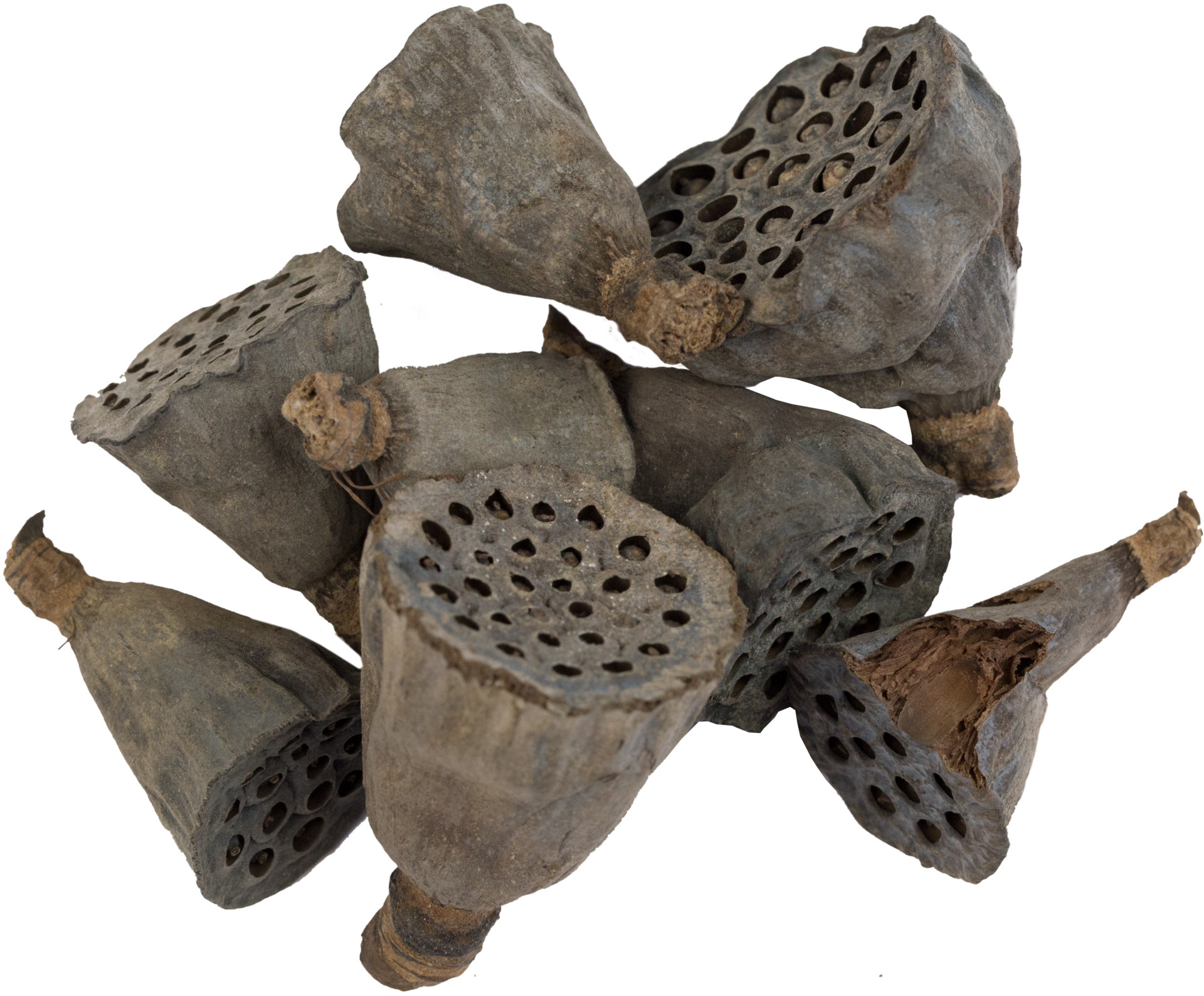 Lotusové tobolky jsou sušené hlavice semeníků lotosu (*Nelumbo nucifera*).