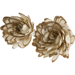 Dekorace Sola Chips Daliya 6 cm je výrazný květ z přírodního sola dřeva, tvořený z tenkých „chipsů“ uspořádaných do bohatého, plného tvaru připomínajícího květ jiřiny. Dekorační přírodní prvek pro věnce, mísy, i sezónní výzdoby.