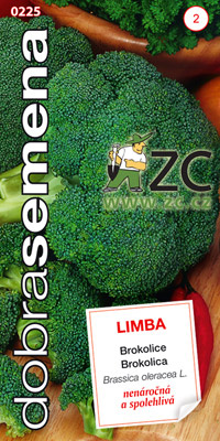 LIMBA - raná odrůda brokolice pro letní i podzimní sklizeň s dobrou odolností k vybíhání do květu. Tvoří středně velké, zelené růžice s jemnou zrnitostí. Kromě centrální růžice vytváří i menší růžice z bočních výhonů. Vegetační doba od výsadby je 65 - 75 dnů.