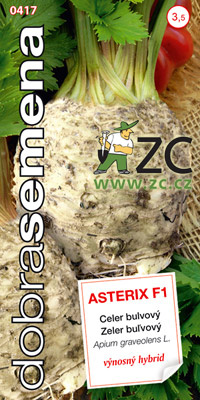 ASTERIX F1 - raná, vysoce výnosná hybridní odrůda bulvového celeru. Je určená pro sklizeň s natí nebo pro podzimní sklizeň ke skladování. Bulva je velmi velká, kulatá, kořenový systém vyrůstá pouze ze spodní části bulvy. Hybrid je odolný proti vybíhání do květu a vysoce tolerantní proti septorióze. Vegetační doba od výsadby do sklizně ke skladování je cca 130 dní.