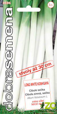 LONG WHITE KOSHIGAYA - cibule sečka s extra dlouhými a silnými stvoly dorůstajícími až 30 cm. Rostlina je jednovrcholová a nevětvící, netvoří trsy. Silné stvoly jsou výborné na grilování, jakoukoli tepelnou úpravu i za syrova. Pěstujte jako pórky z předpěstované sadby. Můžete využít i v mladším stadiu jako klasickou cibuli sečku.
