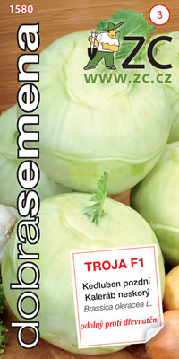 TROJA F1 – polopozdní až pozdní hybridní odrůda, odolná proti dřevnatění a přerůstání bulev. Bulva je velká, ploše kulovitá, o průměru 15 - 18 cm. Dužnina je jemná, vysoce odolná k dřevnatění i houbovatění. Bulvy proto možno sklízet v delším časovém období bez ztráty jejich kvality. Odrůda je vhodná k jarnímu a letnímu polnímu pěstování, je ji možno pěstovat i pro podzimní sklizeň z letních výsevů. Vegetační doba od výsevu je 90 - 100 dnů.