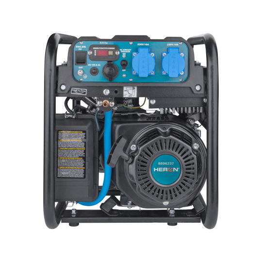 Elektrocentrála HERON je moderní zdroj elektrické energie určený všem, kteří potřebují spolehlivý, úsporný a přenosný výkon. Díky digitální invertorové technologii poskytuje čisté a stabilní napětí vhodné i pro citlivou elektroniku, přičemž zachovává nízkou hmotnost a kompaktní rozměry. Oproti běžným modelům s AVR regulací nabízí vyšší účinnost a efektivnější provoz, což z ní činí ideální zařízení pro stavebníky, servisní techniky i rekreační využití. Srdcem centrály je čtyřtaktní motor o výkonu 7,5HP, který umožňuje dlouhodobý elektrický výkon 3,8kW a krátkodobě až 4,2kW. Tento výkon postačí pro napájení většiny nářadí, čerpadel či topných spotřebičů. Výhodou je také možnost provozu na tři druhy paliva – benzín, LPG a CNG. Při provozu na benzín a LPG je výkon shodný, zatímco při použití CNG je maximální výkon 3,6kW a provozní výkon 3,2kW. Díky tomu lze zařízení ekonomicky využívat i v místech s omezeným přístupem k tradičním pohonným hmotám, například při dlouhodobém provozu. Dvojice zásuvek 230V/16A umožňuje současné použití více zařízení a 12V výstup s autozásuvkou poskytuje napájení drobných spotřebičů s odběrem do 8,3A – například USB nabíječek, chladicích boxů, vysavačů apod. Přiložené kabely zároveň umožňují nouzové nabíjení autobaterií. Digitální panel zobrazuje celkový i aktuální čas provozu, výstupní napětí a frekvenci. Velkou výhodou tohoto modelu je kompaktnost: invertorová technologie umožnila snížit hmotnost oproti běžným AVR centrálám téměř o 40% na 28 kg a zároveň zmenšila objem o třetinu. Díky tomu se zařízení snadno přenáší a nevyžaduje velký prostor pro skladování. Robustní rám zajišťuje stabilitu a bezpečnou manipulaci i v náročném terénu. Elektronická regulace výkonu automaticky přizpůsobuje otáčky motoru aktuálnímu zatížení, čímž snižuje spotřebu. HERON tak představuje ideální volbu pro ty, kdo hledají tišší, lehčí a efektivnější elektrocentrálu s výkonem téměř 4kW v moderním přenosném provedení. Nabízí kombinaci vysokého výkonu, mobility a spolehlivosti při zachování příznivé ceny.