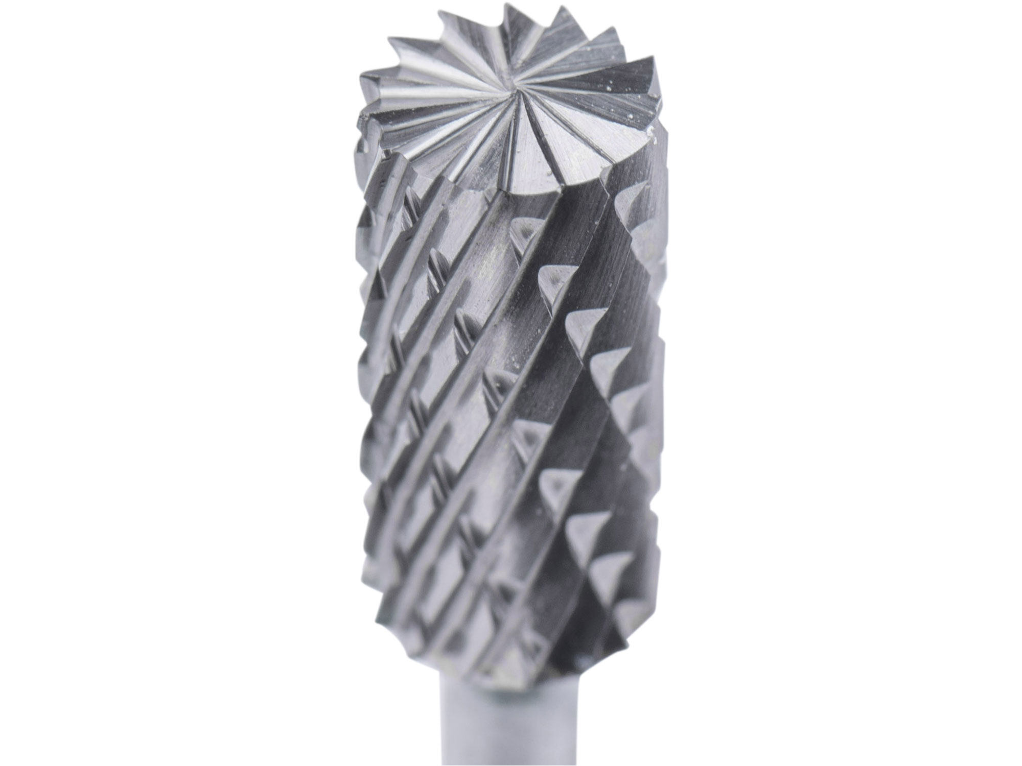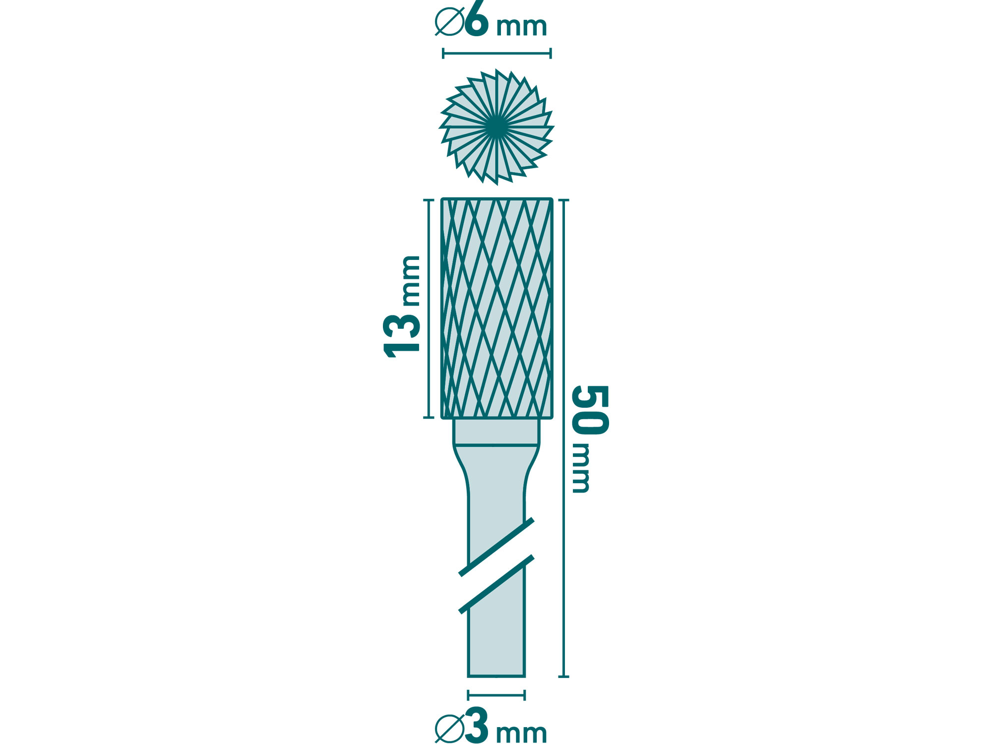 fréza karbidová, válcová s čelním ozubením, ⌀6x13mm, ⌀stopky 3mm, sek střední (double-cut)