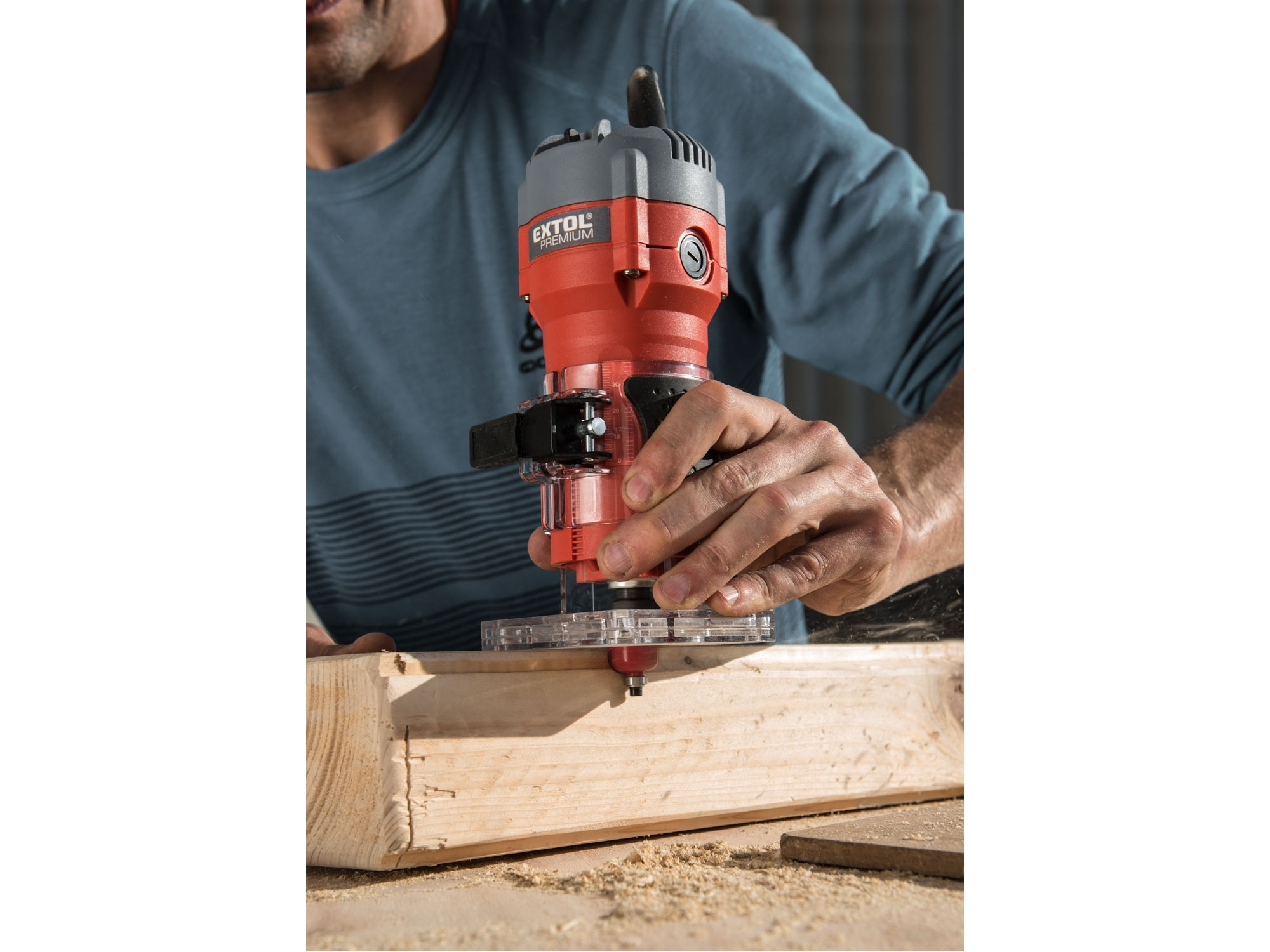 Ohraňovací frézka se vyznačuje jednoduchostí a spolehlivostí. Tato jednoruční minifrézka je určena k frézováni otvorů, hran a profilů do dřeva s různými tvary v závislosti na tvaru použité tvarové frézy. Malé rozměry a nízká hmotnost umožňují vedení frézky jednou rukou a snadnou manipulaci při práci. Vysoké otáčky zajistí dokonale hladký opracovaný povrch. K frézce jsou přibaleny tři různé vodítka pro vedení frézky při práci. Válečkové vodítko pro frézování oblých hran. Podélné vodítko pro frézování podél rovných hran a kružnic. Kopírovací vložka pro frézování dle přiloženého vzoru. Stojan frézky umožňuje nastavit hloubku frézování.