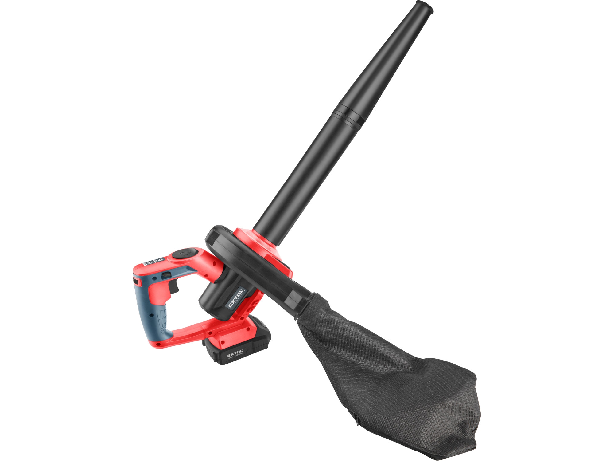 Aku fukar/vysavač 2v1 lze jednoduše přenastavit pro použití jako fukar, nebo jako vysavač se sběrným vakem. Fukarem lze z venkovních ploch proudem vzduchu komfortně odstranit např. zbytky trávy po sekání trávníku, piliny po řezání dřeva, suché jehličí či listí apod. Po přenastavení fukaru na vysavač se sběrným vakem lze vysát pevné částice např. piliny, jehličí a drobné listí z terasy, chodníku, v rozích apod. Sběrný vak lze snadno odejmout a vysypat. Stroj je vybaven regulací průtoku vzduchu dle potřeby a LED světlem pro nasvícení pracovního místa, což je velmi užitečné pokud potřebujete něco vysát v rohu. Když připojíte k fukaru přiložené nástavce, můžete ho použít pro nafukování lehátek, bazénů, kánoí, stanů apod. Díky zajímavému designu je stroj velmi malý a jednoduše přenosný. Pro běžnou práci dostačují jeden nebo dva 2000mAh akumulátory, které můžete rychle nabít v rychlonabíječce, pro náročnější nebo delší práci doporučujeme větší akumulátory s kapacitou 4000–8000mAh. Akumulátor má indikátor nabití a lze použít ve všech typech nářadí řady EXTOL SHARE20V. Díky použité Li-ion technologii je ho možné kdykoliv dobíjet, aniž by se tím snižovala jeho kapacita. Li-ion akumulátor ztrácí energii vlivem samovybíjení velmi pomalu a vydrží dlouho nabitý a připravený k použití.