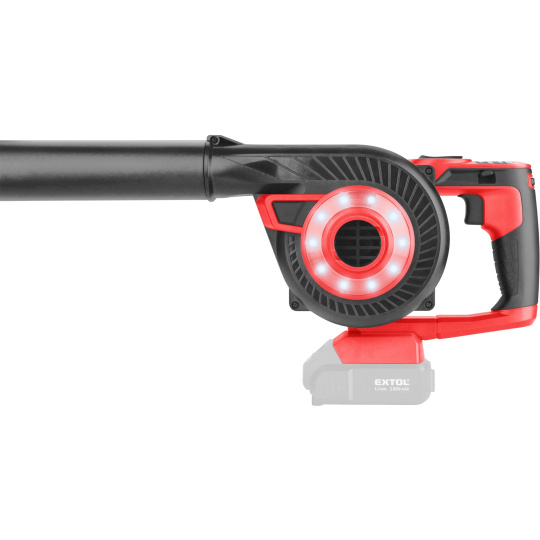 Aku fukar/vysavač 2v1 lze jednoduše přenastavit pro použití jako fukar, nebo jako vysavač se sběrným vakem. Fukarem lze z venkovních ploch proudem vzduchu komfortně odstranit např. zbytky trávy po sekání trávníku, piliny po řezání dřeva, suché jehličí či listí apod. Po přenastavení fukaru na vysavač se sběrným vakem lze vysát pevné částice např. piliny, jehličí a drobné listí z terasy, chodníku, v rozích apod. Sběrný vak lze snadno odejmout a vysypat. Stroj je vybaven regulací průtoku vzduchu dle potřeby a LED světlem pro nasvícení pracovního místa, což je velmi užitečné pokud potřebujete něco vysát v rohu. Když připojíte k fukaru přiložené nástavce, můžete ho použít pro nafukování lehátek, bazénů, kánoí, stanů apod. Díky zajímavému designu je stroj velmi malý a jednoduše přenosný. Pro běžnou práci dostačují jeden nebo dva 2000mAh akumulátory, které můžete rychle nabít v rychlonabíječce, pro náročnější nebo delší práci doporučujeme větší akumulátory s kapacitou 4000–8000mAh. Akumulátor má indikátor nabití a lze použít ve všech typech nářadí řady EXTOL SHARE20V. Díky použité Li-ion technologii je ho možné kdykoliv dobíjet, aniž by se tím snižovala jeho kapacita. Li-ion akumulátor ztrácí energii vlivem samovybíjení velmi pomalu a vydrží dlouho nabitý a připravený k použití.