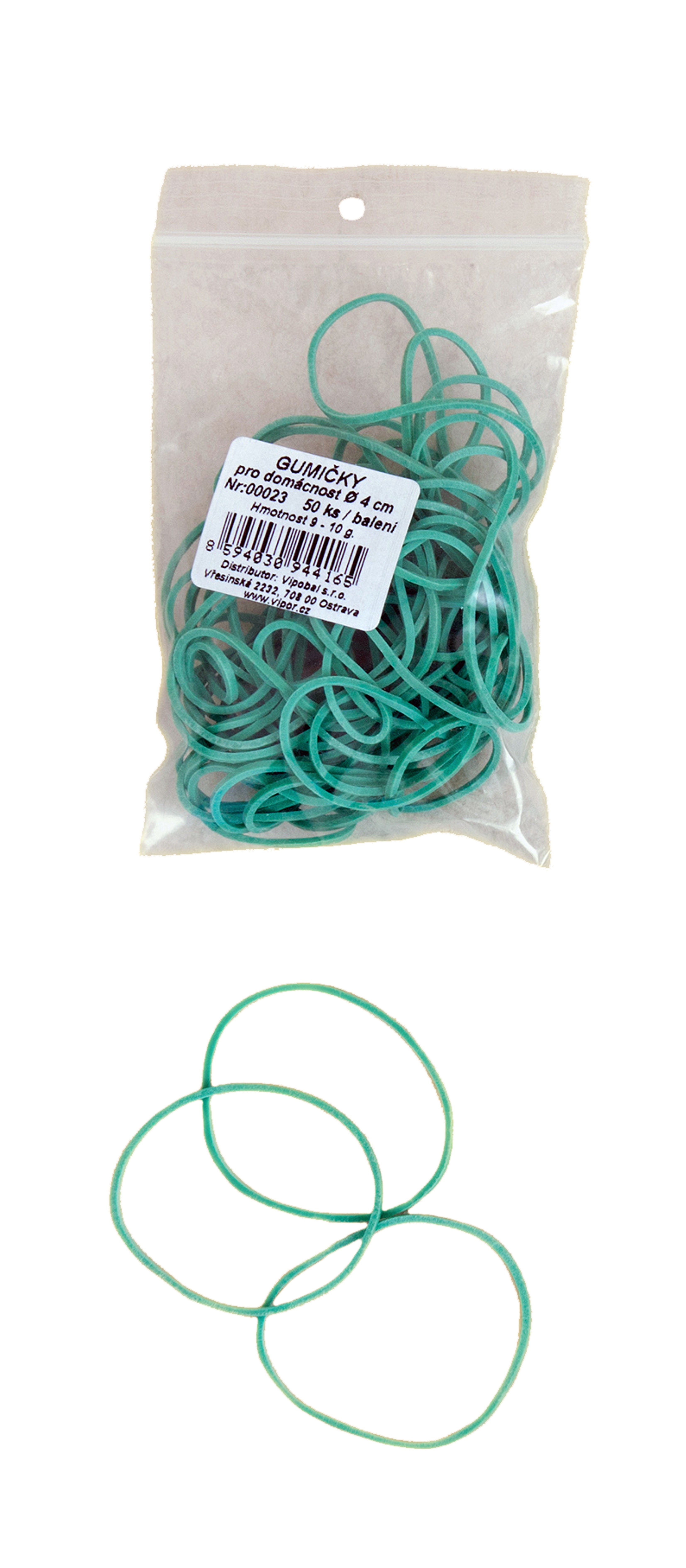 Gumičky o průměru 4 cm balené v balíčku po 50 ks.