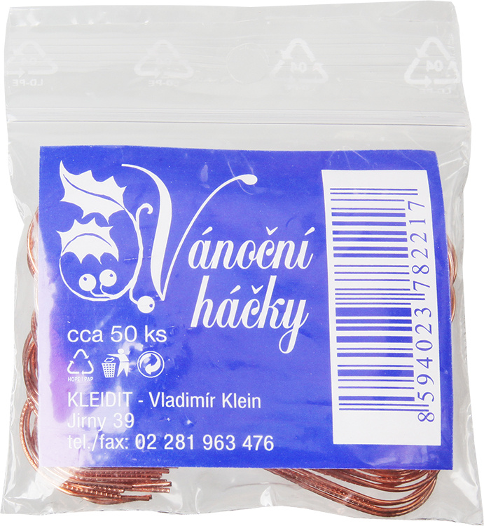 Vánoční závěsné háčky - poměděné, délka 5 cm. Balení obsahuje 50 ks.