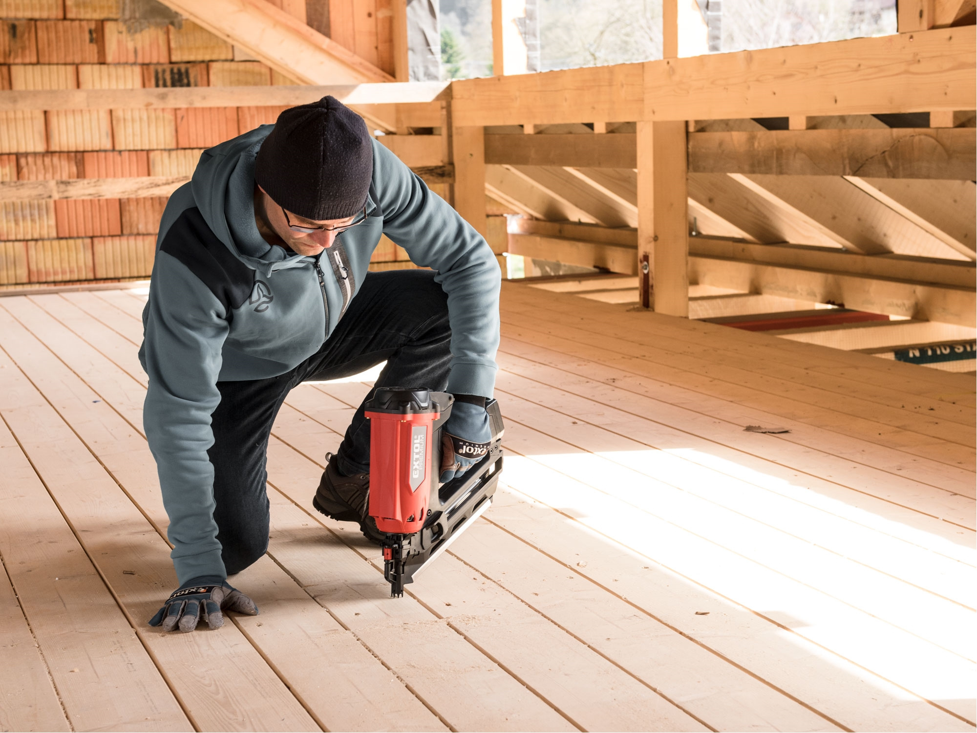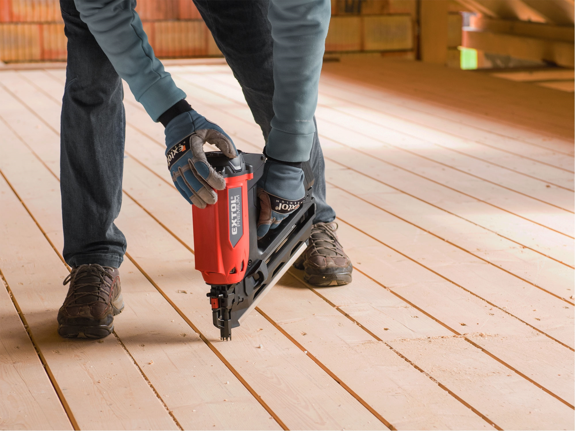 Silná hřebíkovačka na konstrukce se zážehovým plynovým pohonem je určena pro náročné nebo celodenní práce ve výškách a na stavbách, pro výrobu konstrukcí ze dřeva např. stloukáním krovů při stavbě střechy a celých dřevostaveb, pro výrobu bednění apod. s použitím hladkých či vroubkovaných hřebíků o délce 50-90 mm s úhlem sklonu v pásu 34°. Hřebíkovačka umožňuje nastřelit mnohonásobně více hřebíků na jednu plynovou kartuš (až 1200ks) a 5000ks na jednu baterii oproti čistě aku hřebíkovačkám. V porovnání s pneumatickými hřebíkovačkami zase nemusíte tahat kompresor s hadicemi a hřebíkovačka má tichý provoz. Hřebíkovačka umožňuje snadné nastavení hloubky zaražení hřebíku do dřeva. Při přerušení práce ji lze zavěsit za pracovní opasek. Díky tomu, že je hřebíkovačka poháněna zážehem plynu z malé plynové kartuše, je lehká a má vysoký výkon. Součástí hřebíkovačky je také malá a lehká odnímatelná nabíjecí Li-ion baterie sloužící pro zážeh plynu. Náhradní nádobky s hořlavým plynem o objemu 80 ml určené pro pohon plynových hřebíkovaček lze zakoupit v obchodní síti, např. od výrobce BOSTITCH, objednávací specifikace nádobky: FC 80MLHPB nebo ekvivalent od jiných výrobců.