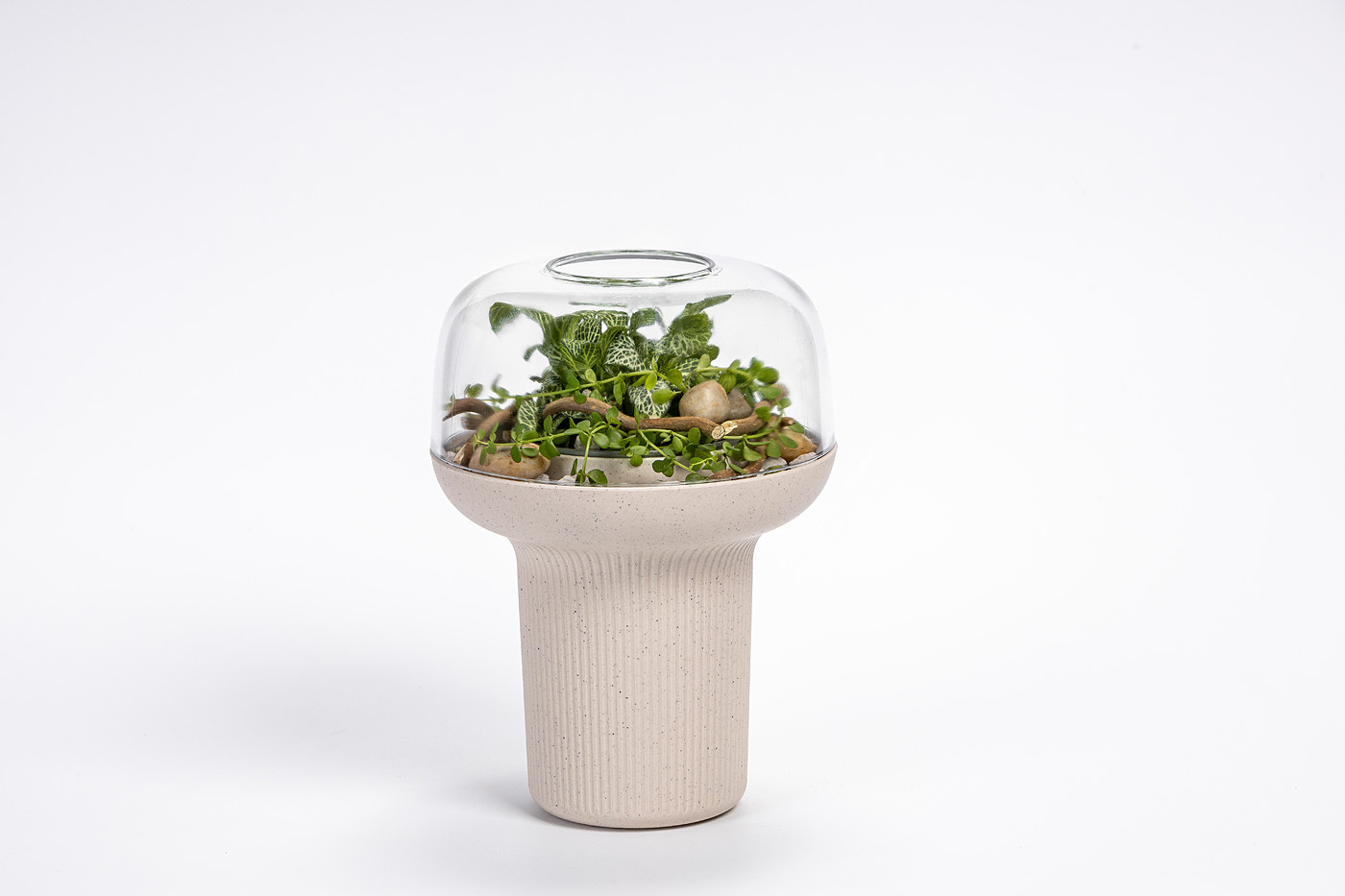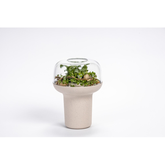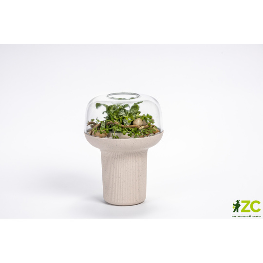 Pěstební nádoba s moderním designem, ideální pro pěstování vlhkomilných rostlin, jako jsou masožravé rostliny, orchideje, tilandsie a jiné vhodné rostliny malého vzrůstu.