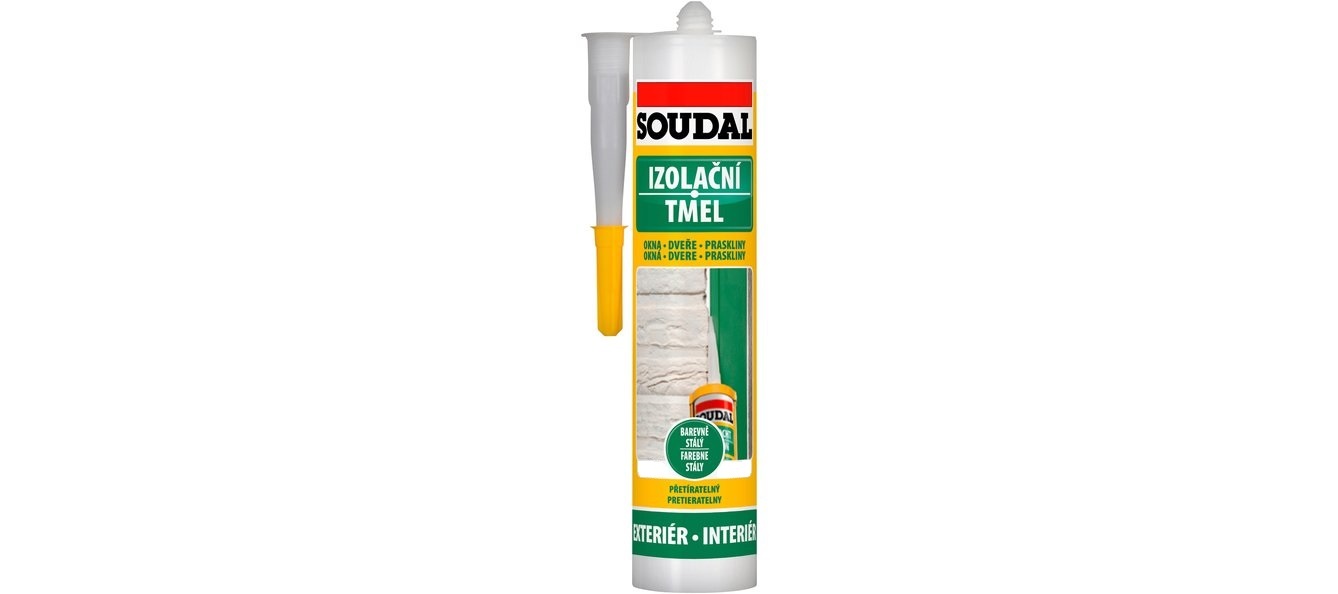 Soudal izolační tmel je vysoce flexibilní tmel pro venkovní i vnitřní použití. Přetíratelný všemi typy barev, vodotěsný a nepropustný, barevně stálý, odolný proti stárnutí, UV záření i jiným a povětrnostním vlivům, nepraská a nevysychá. Vhodný pro spáry s pohybem.