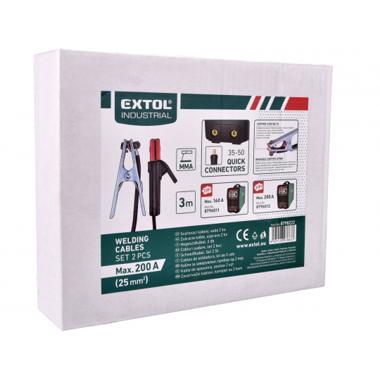 kabely svařovací, sada 2ks, 25mm2, 3m, 35-50, kleště 200A