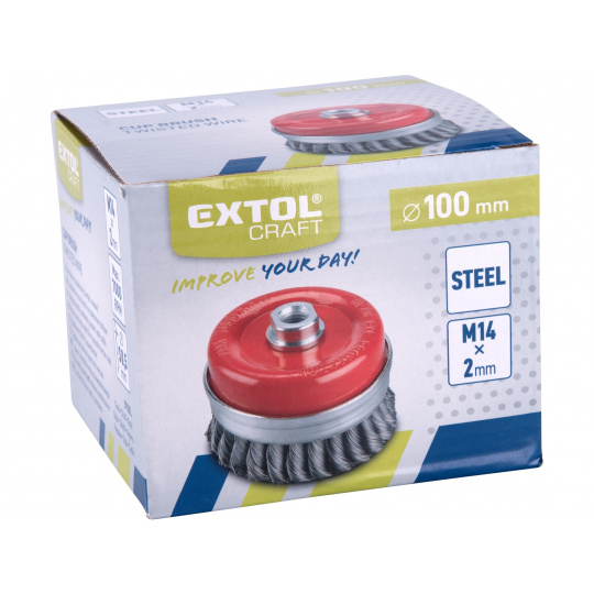 Řada technických kartáčů Extol nabízí široký výběr kartáčů pro všestranné nasazení, např. čištění povrchů materiálů, k odstraňování barev, nečistot, rzi, houževnatých nánosů, ke zdrsňování, odjehlování, odokujování apod. Upínání na úhlové brusky pomocí matice M14 a na vrtačky pomocí stopky o průměru 6mm.