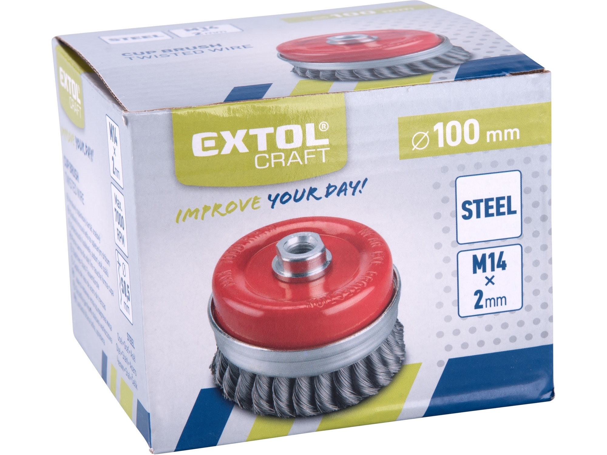 Řada technických kartáčů Extol nabízí široký výběr kartáčů pro všestranné nasazení, např. čištění povrchů materiálů, k odstraňování barev, nečistot, rzi, houževnatých nánosů, ke zdrsňování, odjehlování, odokujování apod. Upínání na úhlové brusky pomocí matice M14 a na vrtačky pomocí stopky o průměru 6mm.