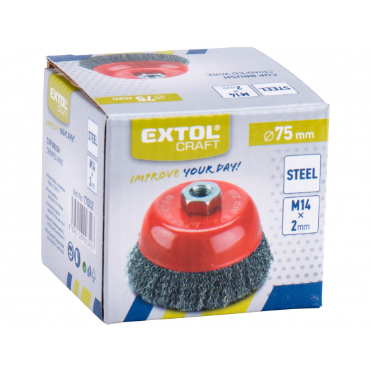 Řada technických kartáčů Extol nabízí široký výběr kartáčů pro všestranné nasazení, např. čištění povrchů materiálů, k odstraňování barev, nečistot, rzi, houževnatých nánosů, ke zdrsňování, odjehlování, odokujování apod. Upínání na úhlové brusky pomocí matice M14 a na vrtačky pomocí stopky o průměru 6mm.