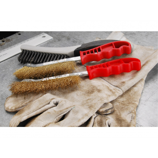 kartáč ocelový pomosazený, plastová rukojeť, 240mm