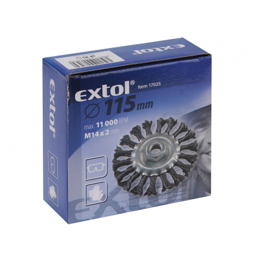 Řada technických kartáčů Extol nabízí široký výběr kartáčů pro všestranné nasazení, např. čištění povrchů materiálů, k odstraňování barev, nečistot, rzi, houževnatých nánosů, ke zdrsňování, odjehlování, odokujování apod. Upínání na úhlové brusky pomocí matice M14 a na vrtačky pomocí stopky o průměru 6mm.