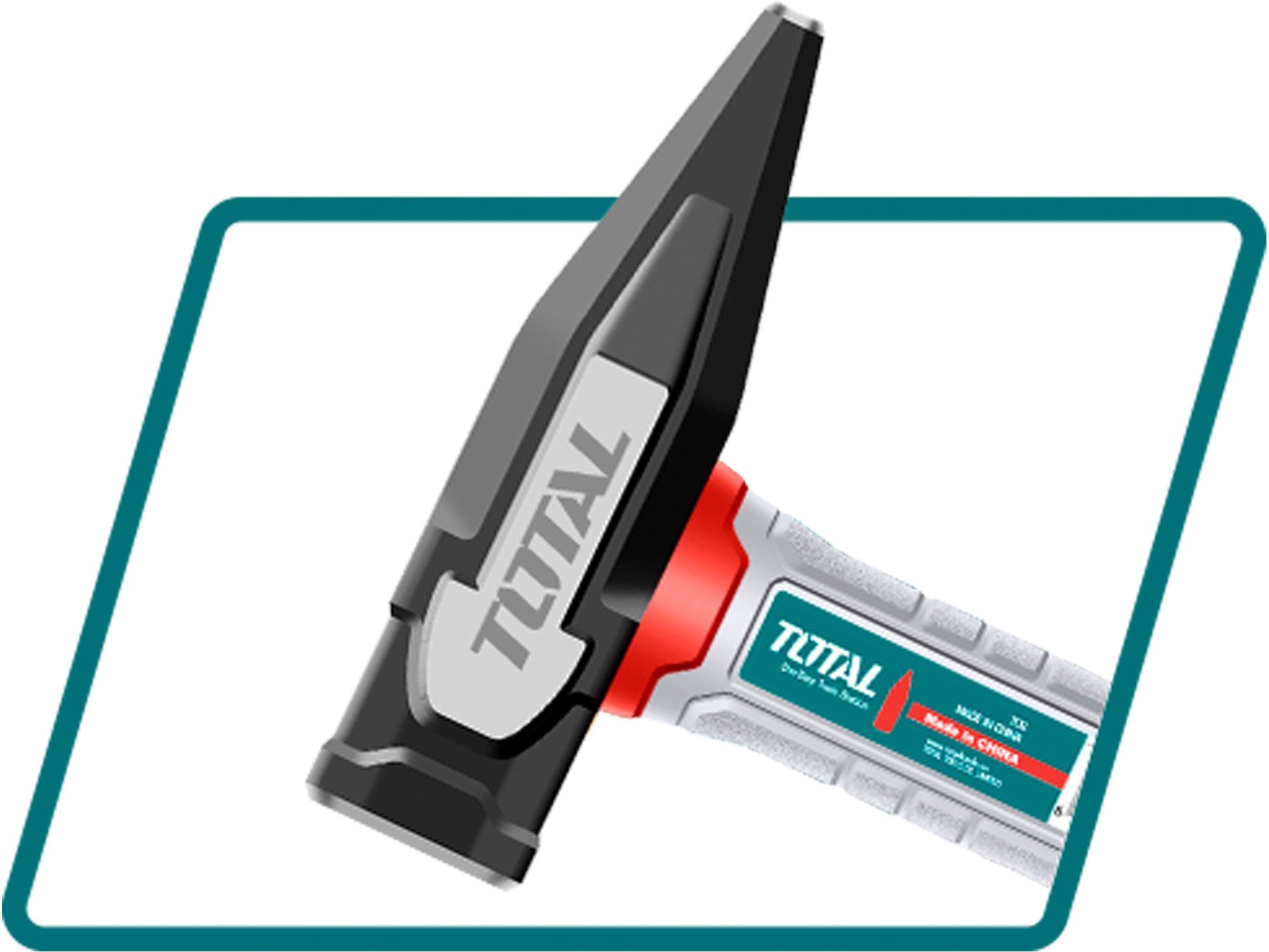Inovovaná zápustkově kovaná hlava kladiva. Tepelné zpracování, 45# uhlíková ocel. Silná tříbarevná sklolaminátová rukojeť pro pohodlný úchop.