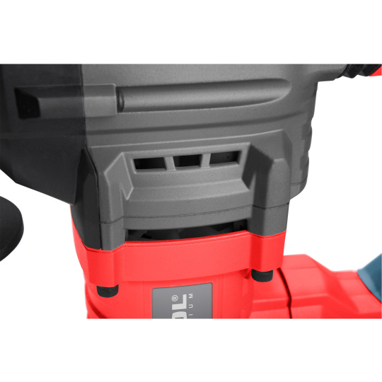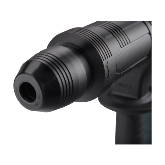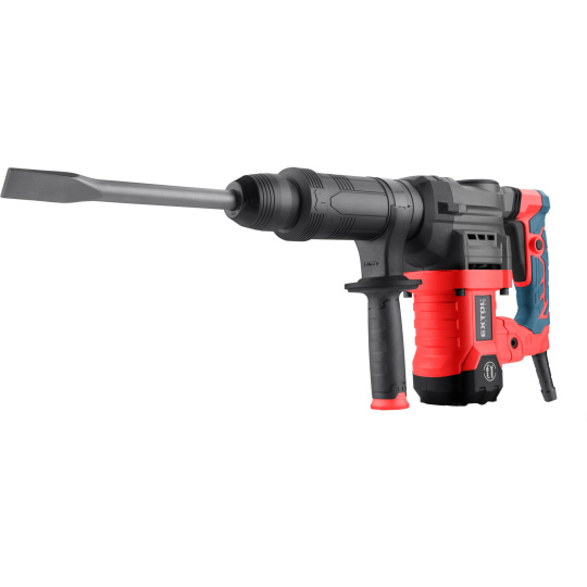 Sekací kladivo SDS MAX s energií úderu 15J je výkonný stroj určený pro stavební a demoliční práce. Využívá se zejména tam, kde běžné vrtací kladivo nestačí – při bourání betonu, kamene nebo cihel. Sekací kladivo s výkonem 15J představuje ideální kompromis mezi silou a ovladatelností. Taková hodnota rázové energie umožňuje rozbíjet silné vrstvy betonu, ale zároveň je možné s nástrojem precizněji pracovat při odsekávání dlaždic, omítek nebo lepených povrchů. V kombinaci s plochým nebo špičatým sekáčem se využívá pro demolici betonových základů, zdiva, schodů nebo podlah. Se širším sekáče lze efektivně odstraňovat staré obklady či asfaltové vrstvy. Konstrukce stroje je navržena tak, aby zajistila maximální přenos rázové energie do nástroje. Antivibrační systém minimalizuje vibrace přenášené na uživatele, což zvyšuje komfort práce a chrání zdraví obsluhy. Díky tomu může uživatel pracovat delší dobu bez výrazné únavy. Rukojeť potažena protiskluzovým materiálem a tvarována tak, aby umožňovala pevné uchopení i při delší práci, což také přispívá ke zvýšení komfortu, jistoty držení při práci a tlumení vibrací. Systém SDS MAX byl vyvinut pro práci s většími vrtáky a sekáči. Na rozdíl od menšího systému SDS Plus, který se používá u lehčích kladiv, má SDS MAX větší průměr stopky a robustnější konstrukci. To umožňuje přenášet větší energii úderu, zajišťuje pevnější uchycení nástroje a zachovává vysokou účinnost i při dlouhodobém zatížení. Průměr stopky je 18 milimetrů, což zvyšuje odolnost vůči ohybu i mechanickému opotřebení. Spínač je vybaven zámkem pro nepřetržitý provoz, což usnadňuje sekání větších ploch bez nutnosti neustále držet spínač. Otočná přední rukojeť v rozsahu 360° umožňuje přizpůsobit polohu rukojeti vzhledem k pracovní poloze kladiva.