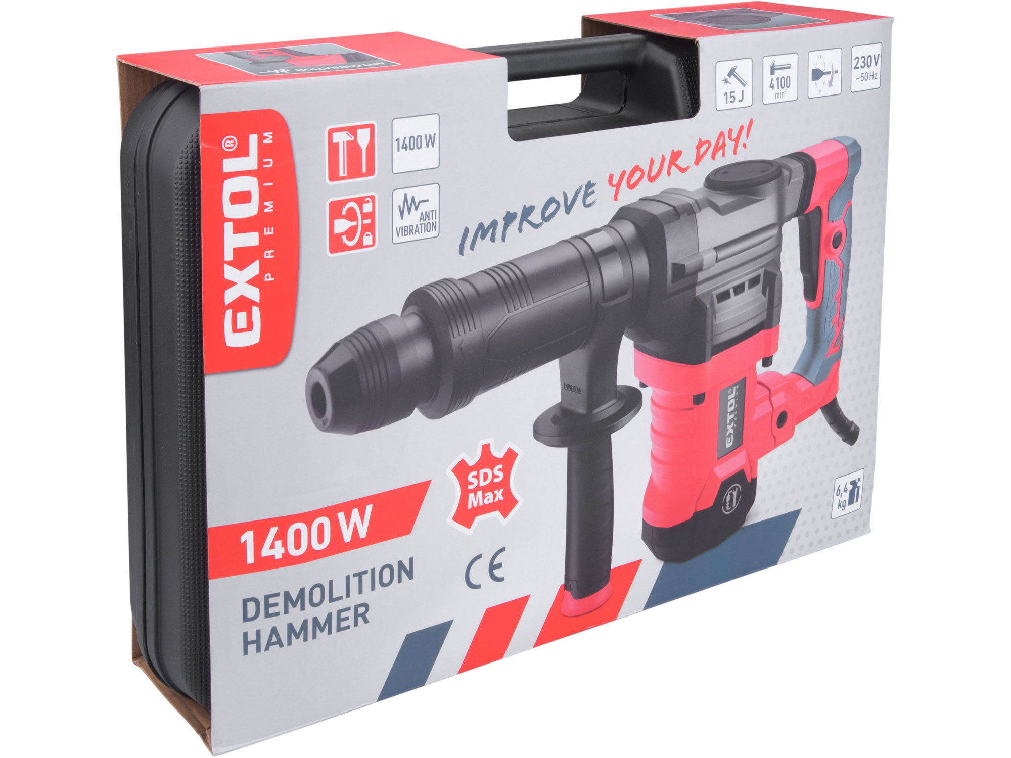 Sekací kladivo SDS MAX s energií úderu 15J je výkonný stroj určený pro stavební a demoliční práce. Využívá se zejména tam, kde běžné vrtací kladivo nestačí – při bourání betonu, kamene nebo cihel. Sekací kladivo s výkonem 15J představuje ideální kompromis mezi silou a ovladatelností. Taková hodnota rázové energie umožňuje rozbíjet silné vrstvy betonu, ale zároveň je možné s nástrojem precizněji pracovat při odsekávání dlaždic, omítek nebo lepených povrchů. V kombinaci s plochým nebo špičatým sekáčem se využívá pro demolici betonových základů, zdiva, schodů nebo podlah. Se širším sekáče lze efektivně odstraňovat staré obklady či asfaltové vrstvy. Konstrukce stroje je navržena tak, aby zajistila maximální přenos rázové energie do nástroje. Antivibrační systém minimalizuje vibrace přenášené na uživatele, což zvyšuje komfort práce a chrání zdraví obsluhy. Díky tomu může uživatel pracovat delší dobu bez výrazné únavy. Rukojeť potažena protiskluzovým materiálem a tvarována tak, aby umožňovala pevné uchopení i při delší práci, což také přispívá ke zvýšení komfortu, jistoty držení při práci a tlumení vibrací. Systém SDS MAX byl vyvinut pro práci s většími vrtáky a sekáči. Na rozdíl od menšího systému SDS Plus, který se používá u lehčích kladiv, má SDS MAX větší průměr stopky a robustnější konstrukci. To umožňuje přenášet větší energii úderu, zajišťuje pevnější uchycení nástroje a zachovává vysokou účinnost i při dlouhodobém zatížení. Průměr stopky je 18 milimetrů, což zvyšuje odolnost vůči ohybu i mechanickému opotřebení. Spínač je vybaven zámkem pro nepřetržitý provoz, což usnadňuje sekání větších ploch bez nutnosti neustále držet spínač. Otočná přední rukojeť v rozsahu 360° umožňuje přizpůsobit polohu rukojeti vzhledem k pracovní poloze kladiva.