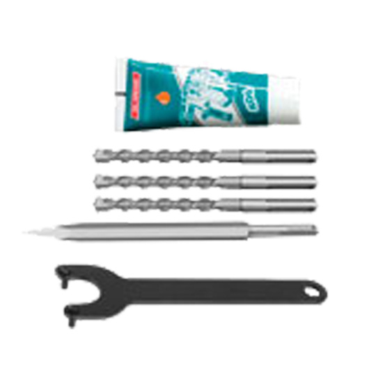 3x vrták, 1x sekáč, 1x vazelína, 1x klíč