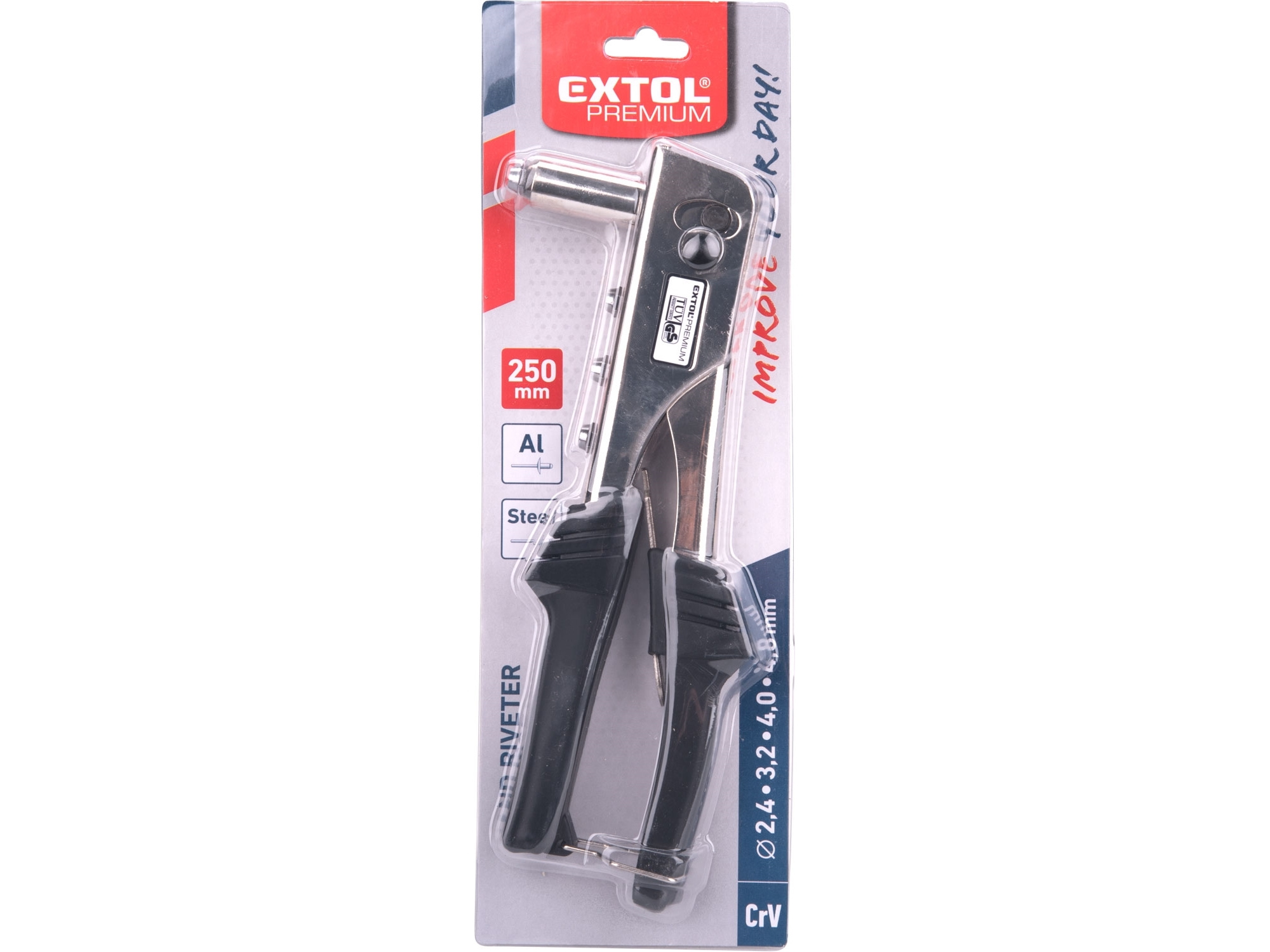 pro trhací nýty 2,4-3,2-4,0-4,8mm z materiálu Al a ocel, síla střihu 6500N