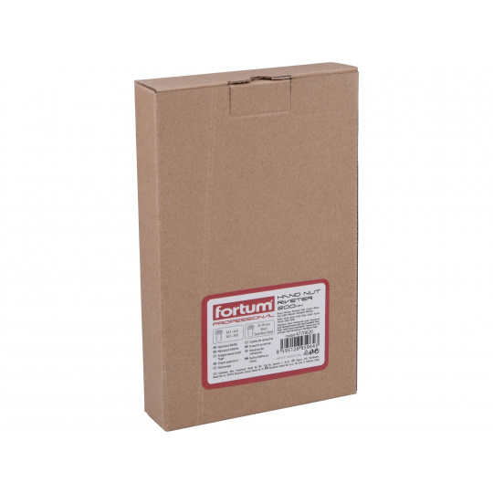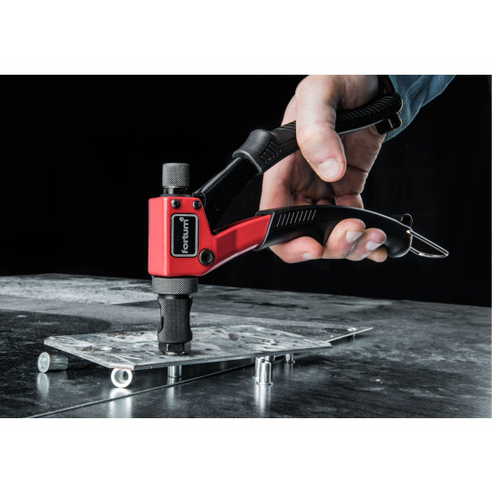Unikátní nýtovací kleště Fortum obsahují množství konstrukčních patentů. Díky pákovým převodům se minimalizuje potřebná síla uživatele. S minimálním úsilím tak vytvoříte pevné odolné spoje, které nahradí šrouby, vruty, obyčejné nýty, pájení a svařování. Čelisti pro uvedené velikosti nýtovacích matic jsou součástí balení. Pomocí nýtovací matice v zanýtovaném spoji vytvoříte neporušený závit, na který můžete snadno připevňovat další komponenty.