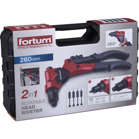 260mm, pro nýtovací matice M3-M4-M5-M6 a trhací nýty 2,4-3,2-4,0-4,8mm z materiálů Al, mosaz, ocel, nerezová ocel