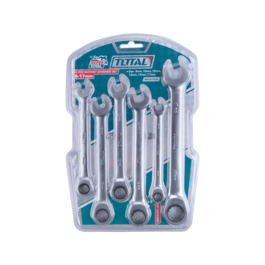 Sada 6ks ráčnových očkoplochých klíčů. Vyrobeno z vysoce kvalitní chrom-molybdenové oceli. Jemně leštěno.Velikos klíčů: 8mm,10mm,12mm,13mm,14mm,17mm