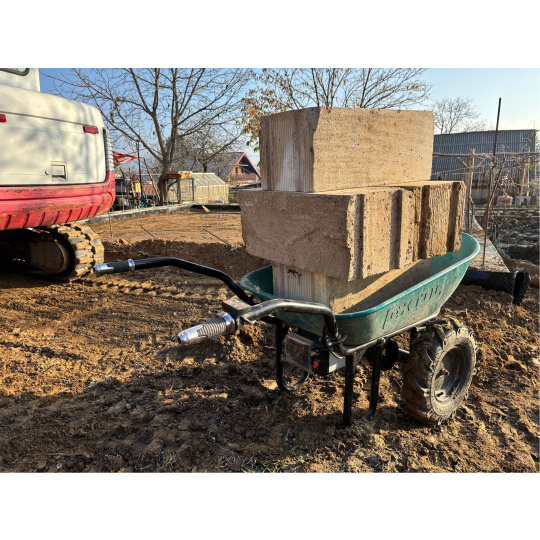 Přepravní aku kolečko dvoukolák s pomocným elektrickým pohonem je určeno pro přepravu tuhých, sypkých nebo hustých materiálů. Díky elektrickému pohonu výrazně urychluje přeprava materiálu a zároveň snižuje únava obsluhy, což významně zvyšuje produktivitu práce. Použití Li-ion baterie výrazně snižuje hmotnost kolečka oproti kolečkům, které jsou poháněny olověnými bateriemi. Kolečko má na pravé rukojeti ovladač kde si pomocí palce nastavíte okamžitou rychlost jak do předu, tak dozadu. Na ovladači lze přepnout jízdu dopředu nebo dozadu, brzdu, normální rychlost nebo Turbo. Pro běžný provoz se používá normální rychlost, Turbo lze použít při jízdě do kopce, v obtížném terénu nebo při přepravě těžšího nákladu. Kolečka jsou poháněná nejmodernějším „brushless" motorem. Tento nový typ motoru má vyšší životnost, je výkonnější a má menší spotřebu el. energie než klasické motory s uhlíkovými kartáči. Pokud je to nutné, lze motor kompletně vypnout a používat kolečko jen na ruční pohon. Zabudovaná převodovka s diferenciálem výrazně zlepšuje prostupnost terénem a výkon motoru při jízdě do kopce. Diferenciál umožňuje otočení koleček na místě. Díky umístnění těžiště nákladu nad osou kol je většina hmotnosti nákladu umístěna na kolech a obsluha skoro nic nenese. Elektrická brzda se používá pokud potřebujete zamezit pohybu kolečka na místě. Pneumatiky mají hluboký vzorek do terénu s dobrou trakcí. Kolečko je dodáváno s kovovou korbou o objemu 100l, bezešvě lisovanou z jednoho kusu plechu. Pro přepravu pevného objemnějšího nákladu (např. krabice, polena …) lze dokoupit rámovou konstrukci, která se přišroubuje na místo korby. Kolečko má krytí IP64, což mu umožňuje dočasnou práci ve vlhkém prostředí, případně umývání vapkou, ale není určeno k trvalému provozu nebo skladování ve vlhkém prostředí. Před přepravou v autě můžete sklopit ručky, takže se kolečka vejdou i do menšího auta. Zdrojem elektrické energie je silná 40V/6Ah Li-ion baterie s LED displejem ukazujícím její úroveň nabití a okamžité napětí baterie. Vyjímatelná baterie umožňuje její snadné nabíjení a skladování v suchém a zatepleném prostředí, což je velmi důležité pro její životnost. Baterie má ochranu proti vybití pod minimální úroveň, před přetížením při nadměrném odběru proudu, přebitím, zkratem a náhlému zvýšení teploty při práci. Pro běžnou práci dostačuje jeden 6000mAh akumulátor, který můžete rychle nabít v rychlonabíječce, pro náročnější nebo delší práci můžete použít další nabitý akumulátor. Díky použité Li-ion technologii je ho možné kdykoliv dobíjet, aniž by se tím snižovala jeho kapacita. Li-ion akumulátor ztrácí energii vlivem samovybíjení velmi pomalu a vydrží dlouho nabitý a připravený k použití.