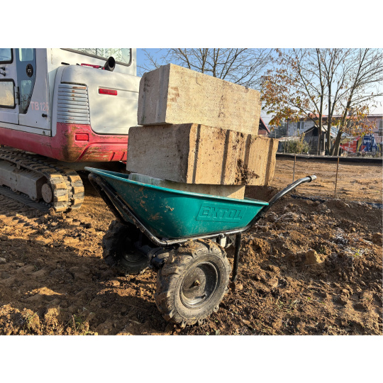 kolečko dvoukolák s převodovkou aku, 260kg, 100l, 40V Li-ion, 6Ah