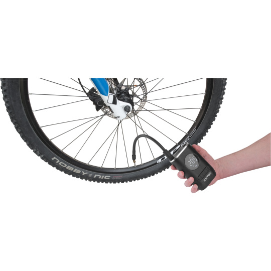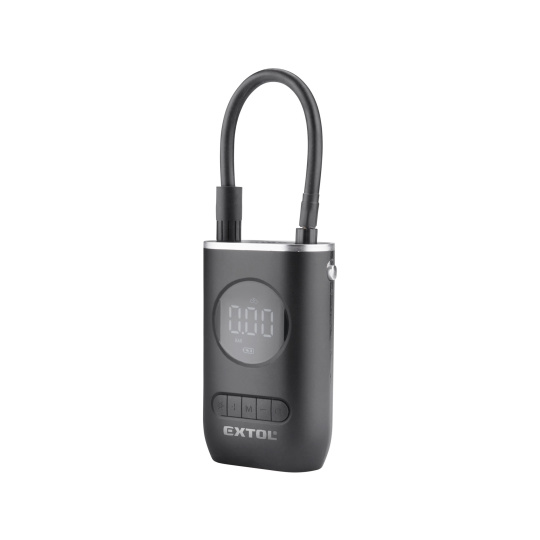 Nabíjecí cestovní kompresor s podsvíceným displejem je určen ke kontrole a nafukování pneumatik bicyklů, motorek a osobních automobilů na předepsaný tlak nebo k nafouknutí sportovních míčů, lehátek, matrací apod. Obsluha je velmi jednoduchá – na kompresoru nastavíte požadovaný tlak nebo zvolíte některou z přednastavených hodnot, spustíte přístroj a vyčkáte do automatického vypnutí. Kompresor má rozměr 13,5×8,5×5cm a hmotnost 380g a lze jej tedy snadno přibalit s sebou na cesty. Podsvícený displej a LED svítidlo, které lze zapnout samostatně a nezávisle na kompresoru, usnadňují používání kompresoru ve tmě. Pokud ho nepoužíváte, kompresor se sám po jedné minutě vypne. S USB-C konektorem jej lze nabít v klasické nabíječce (230V) nebo autonabíječce (12V). Díky Li-ion technologii je možné akumulátory kdykoliv dobíjet, aniž by se tím snižovala jejich kapacita. Li-ion akumulátor ztrácí energii vlivem samovybíjení velmi pomalu a vydrží dlouho nabitý a připravený k použití.