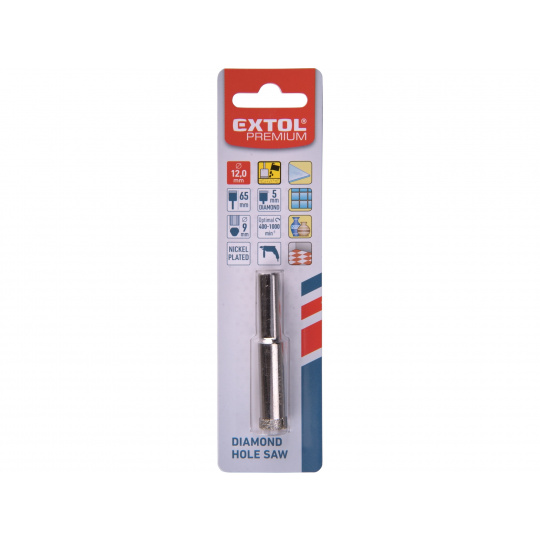 korunka vykružovací diamantová na sklo a keramiku, O 12mm