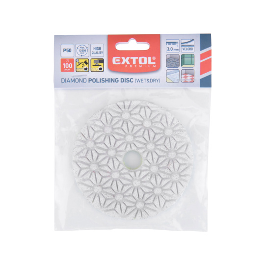 kotouč diamantový leštící na obklady, O100mm, P50, suchý zip