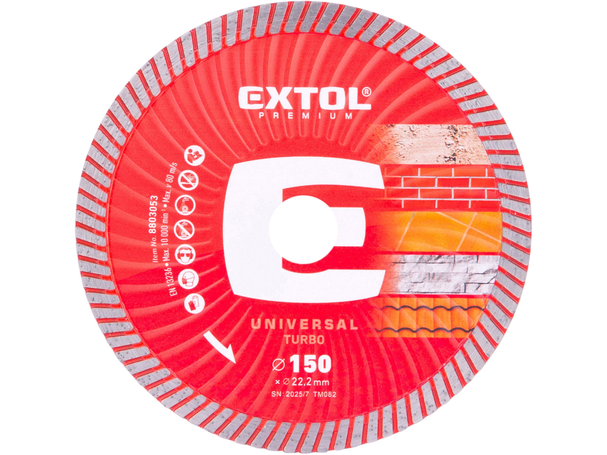 Řada diamantových řezných kotoučů turbo ve vysoké kvalitě pro profesionální a poloprofesionální použití zejména vhodná na řezání betonu, železobetonu, žuly, kamene a obkladů.
