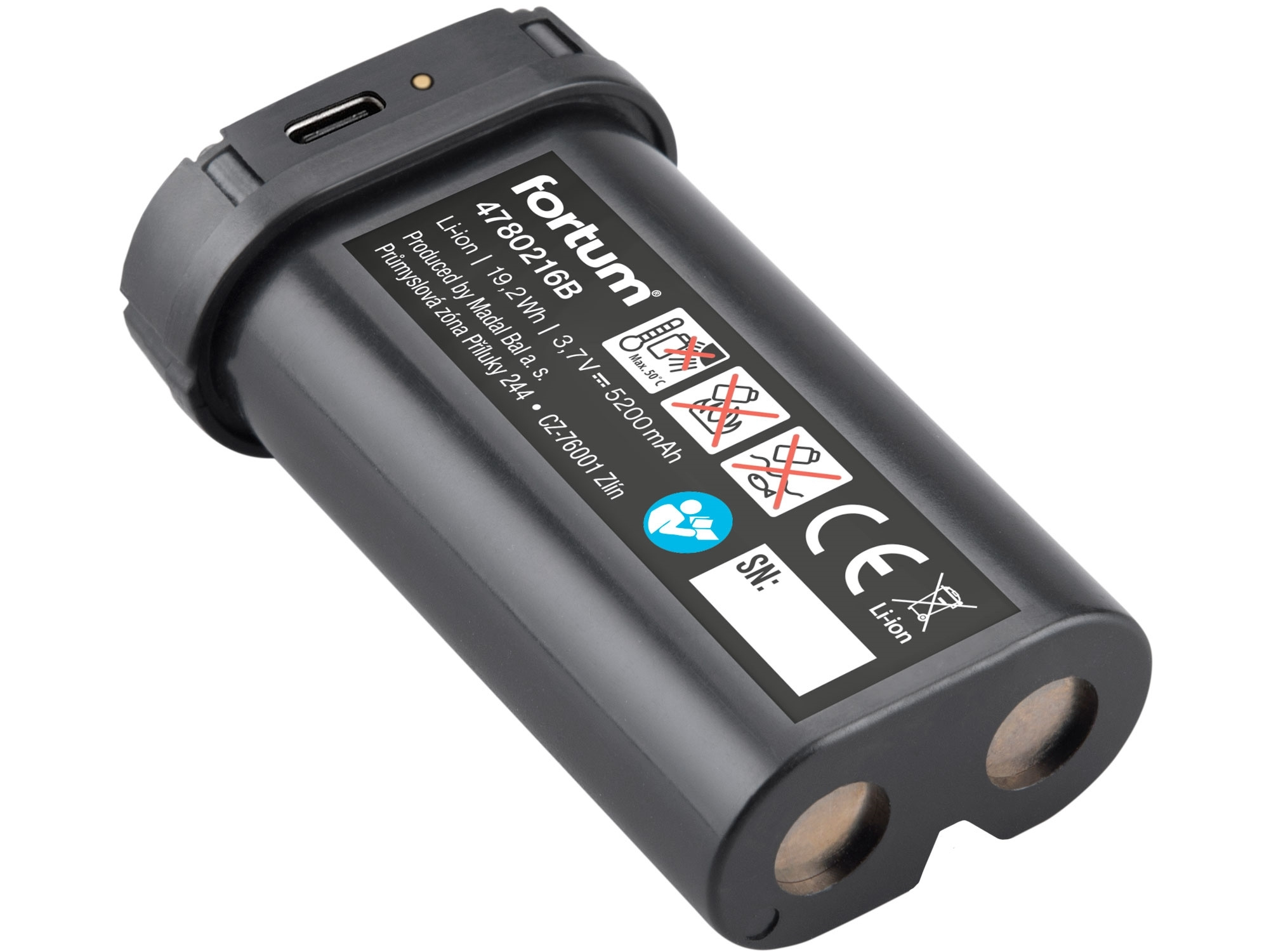 3,7V/5200 mAh Li-ion nabíjecím akumulátorem nebo ze sítě 230V/50Hz nabíječkou (síťovým napájecím adaptérem) a kabelem s USB-C zakončením (vše součástí dodávky)